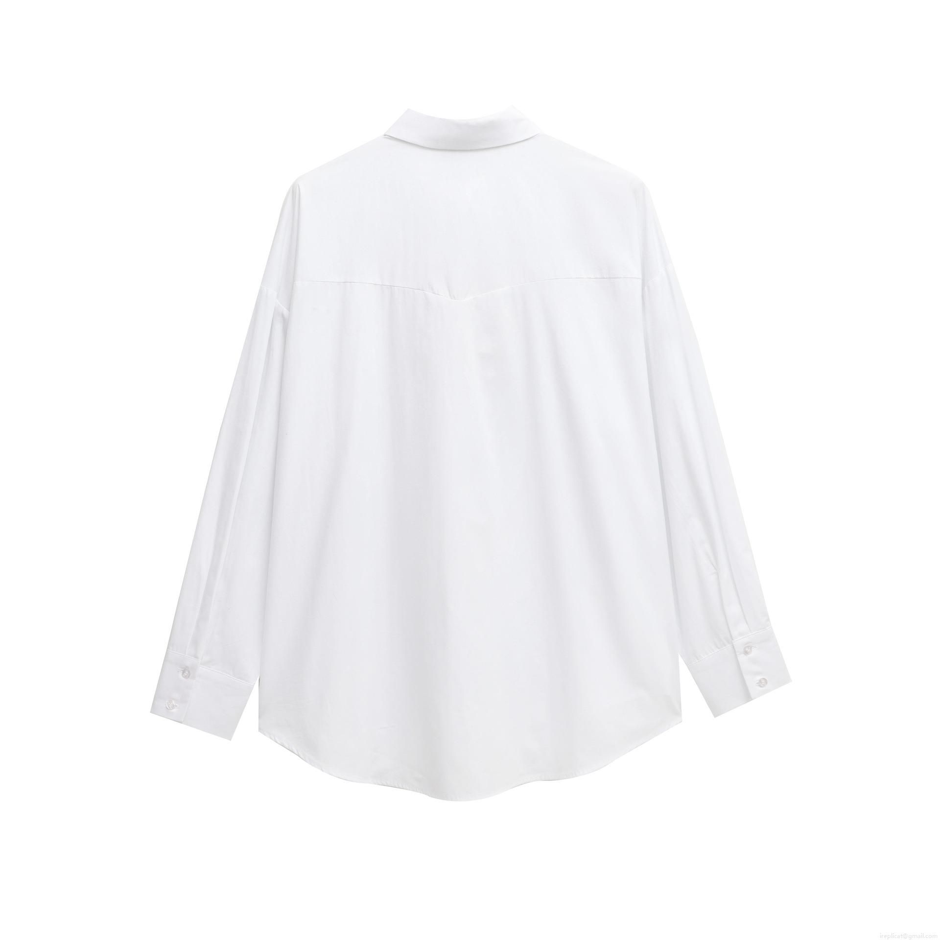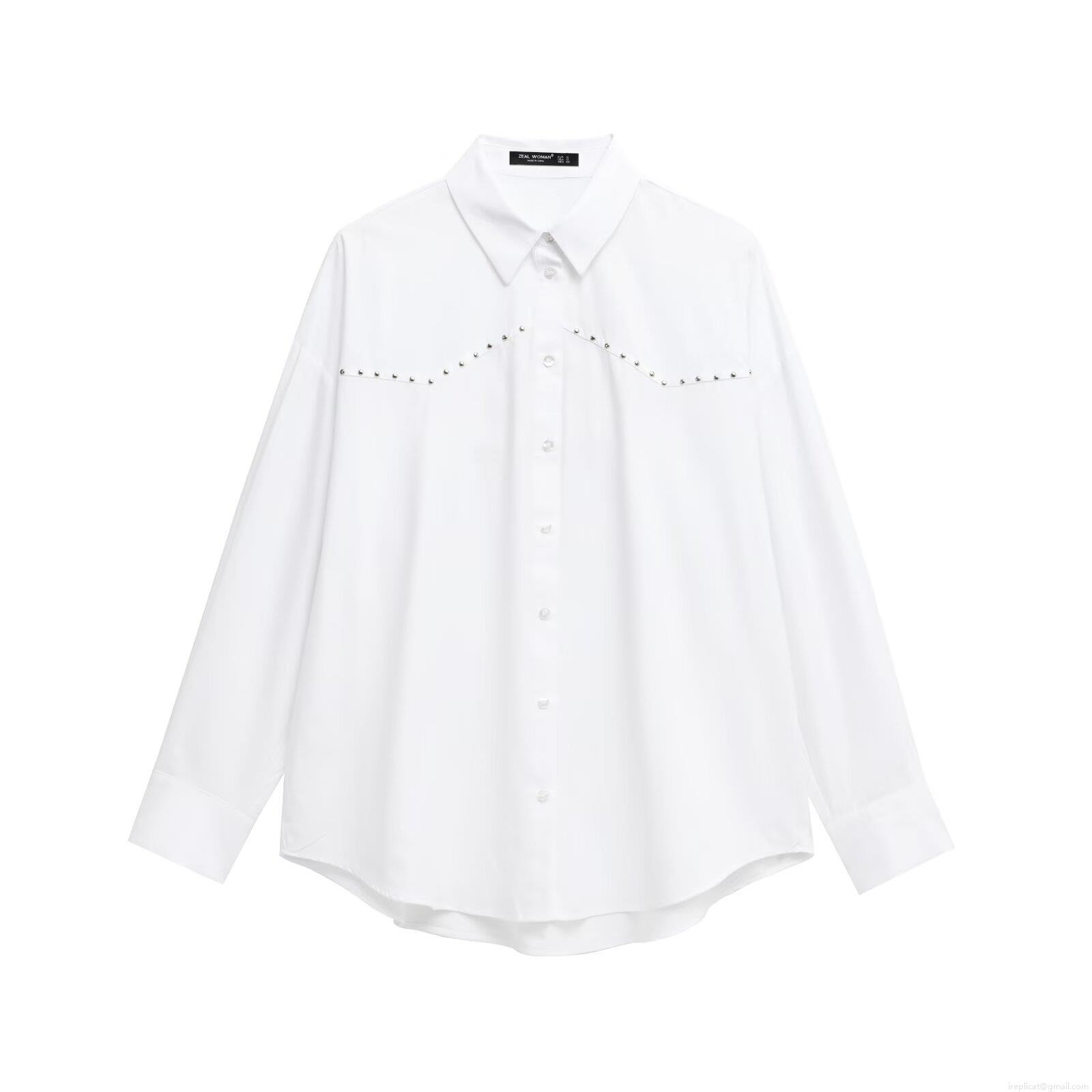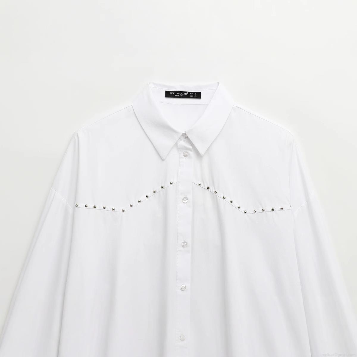 • Women's Fashion Poplin Studded Lapel Loose Long Sleeve White Shirt With Metal Rivets Streetwear Blouse Top