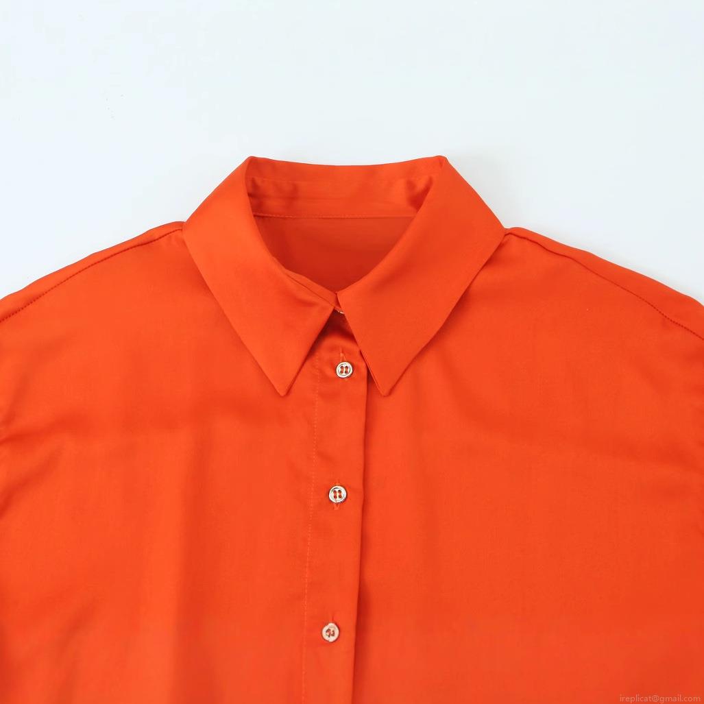 • Women's Fashion Satin Texture Solid Color Long Sleeve Blouse Elegant Lapel Button Down Shirt With Back Adjustable Drawstring Curved Hem Office Top