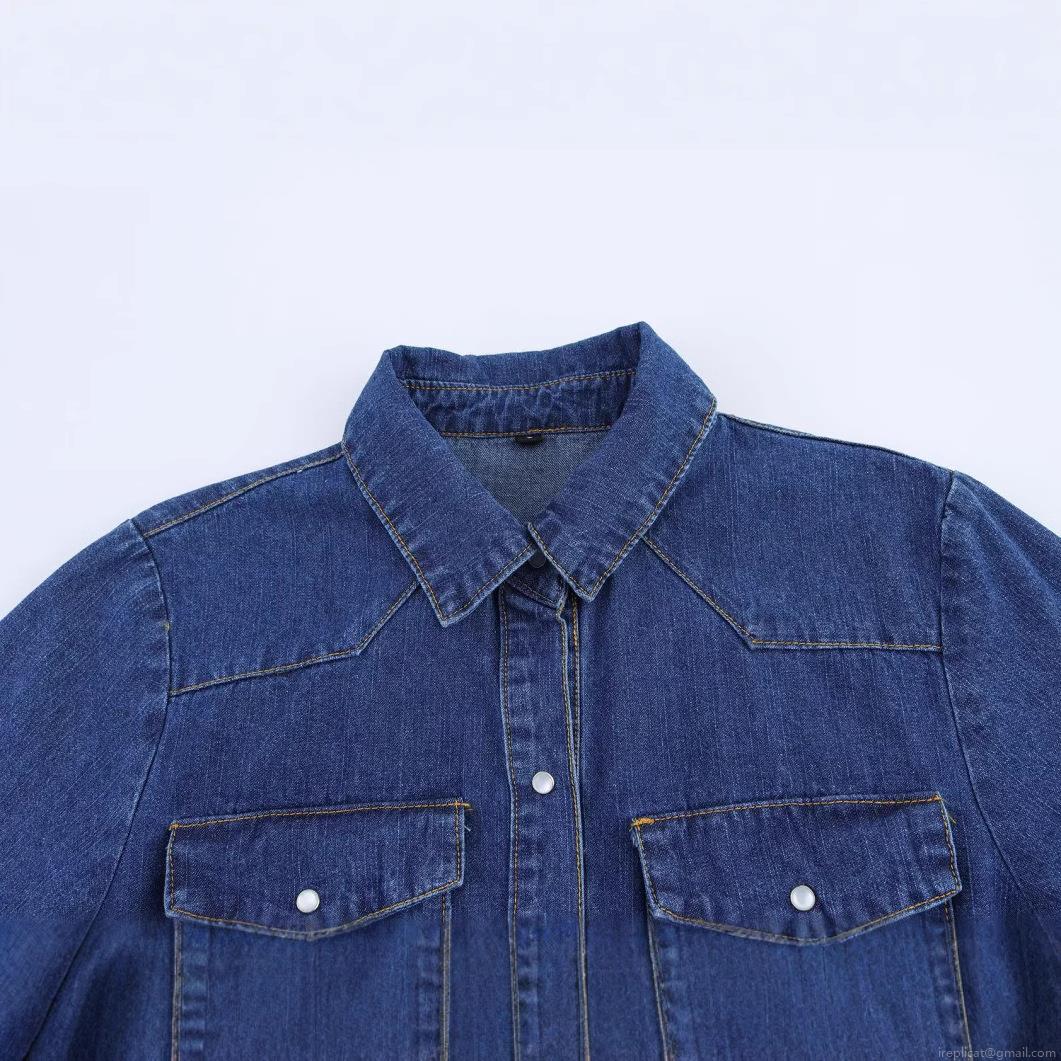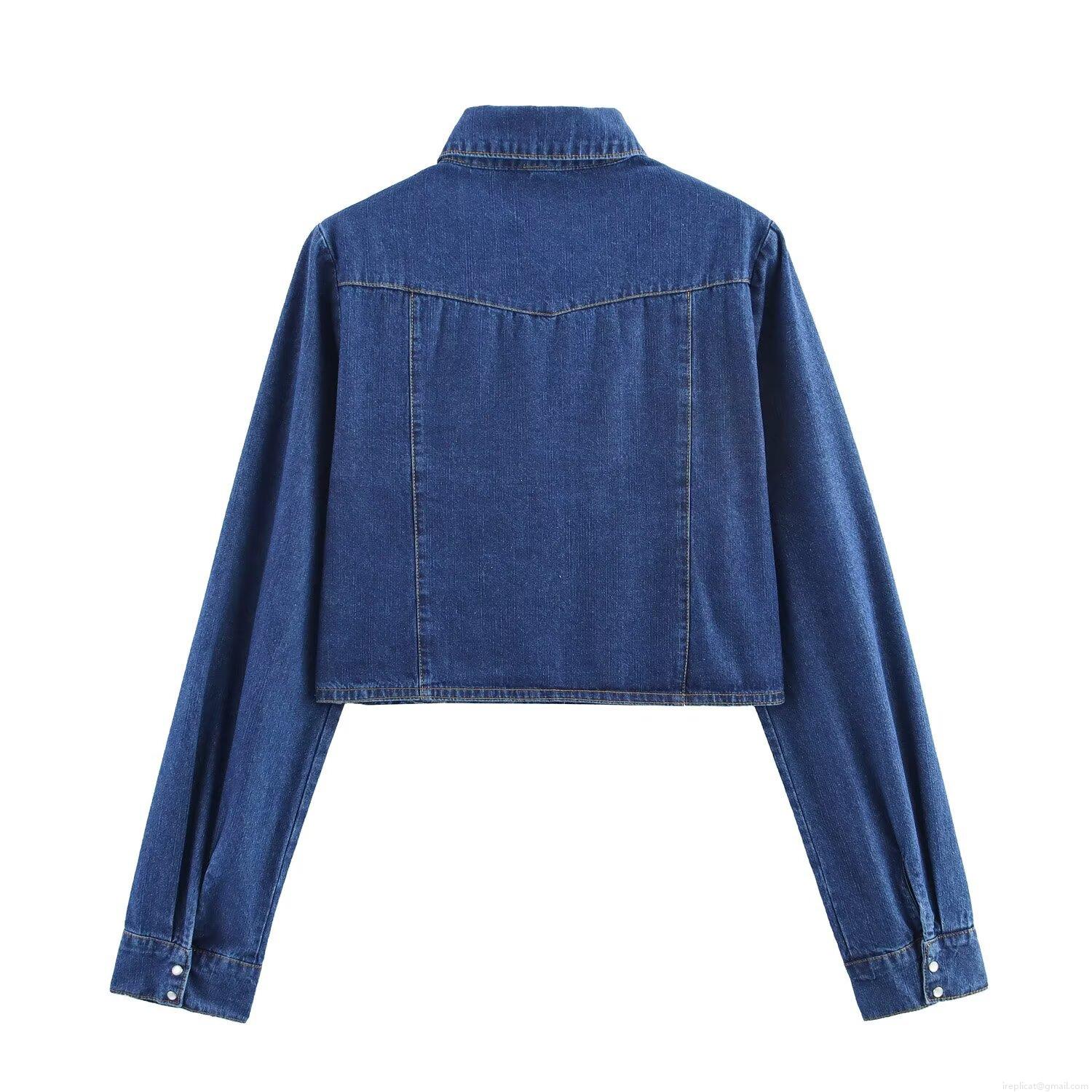 • Women's Fashion Short Denim Shirt Jacket Long Sleeve Lapel Cotton Blend Button Down Blouse With Double Chest Pockets For Casual Streetwear