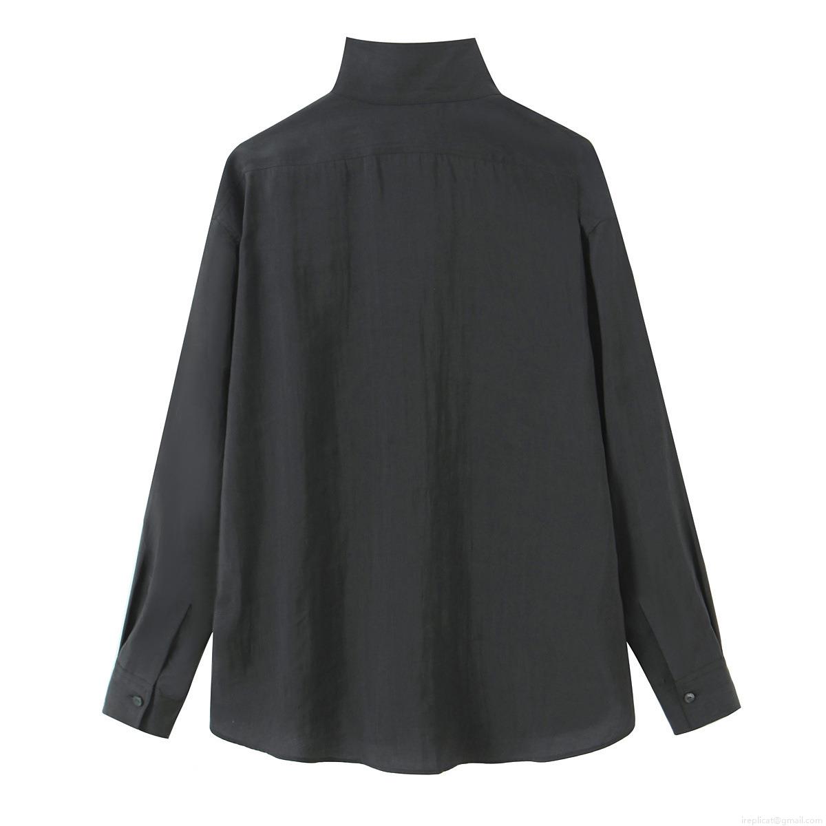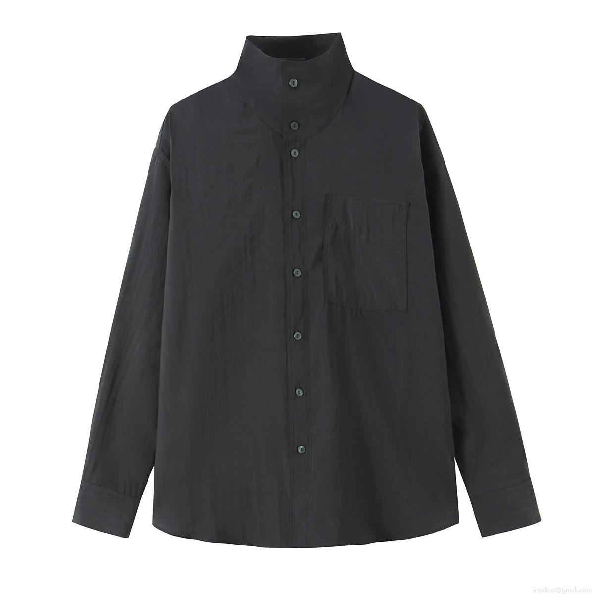 • Women's Fashion Stand Collar Long Sleeve Blouse Casual Solid Color Loose Fit Single Breasted Shirt With Pocket Polyester Blend Tops For Winter