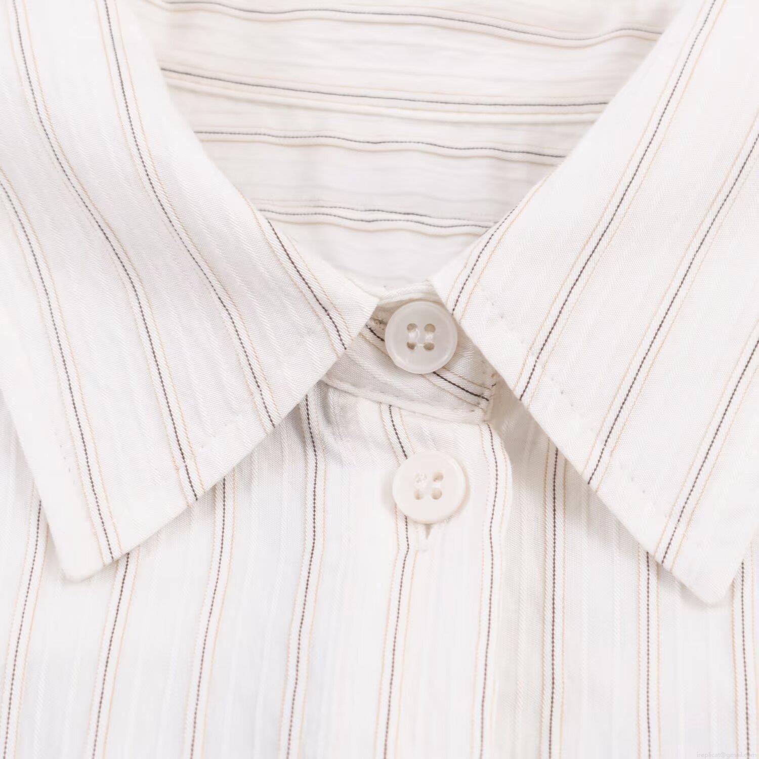 • Women's Fashion Striped Blouse Long Sleeve Polyester Shirt With Pocket Single Breasted Drapey Casual Top For Ladies Spring Autumn Wear