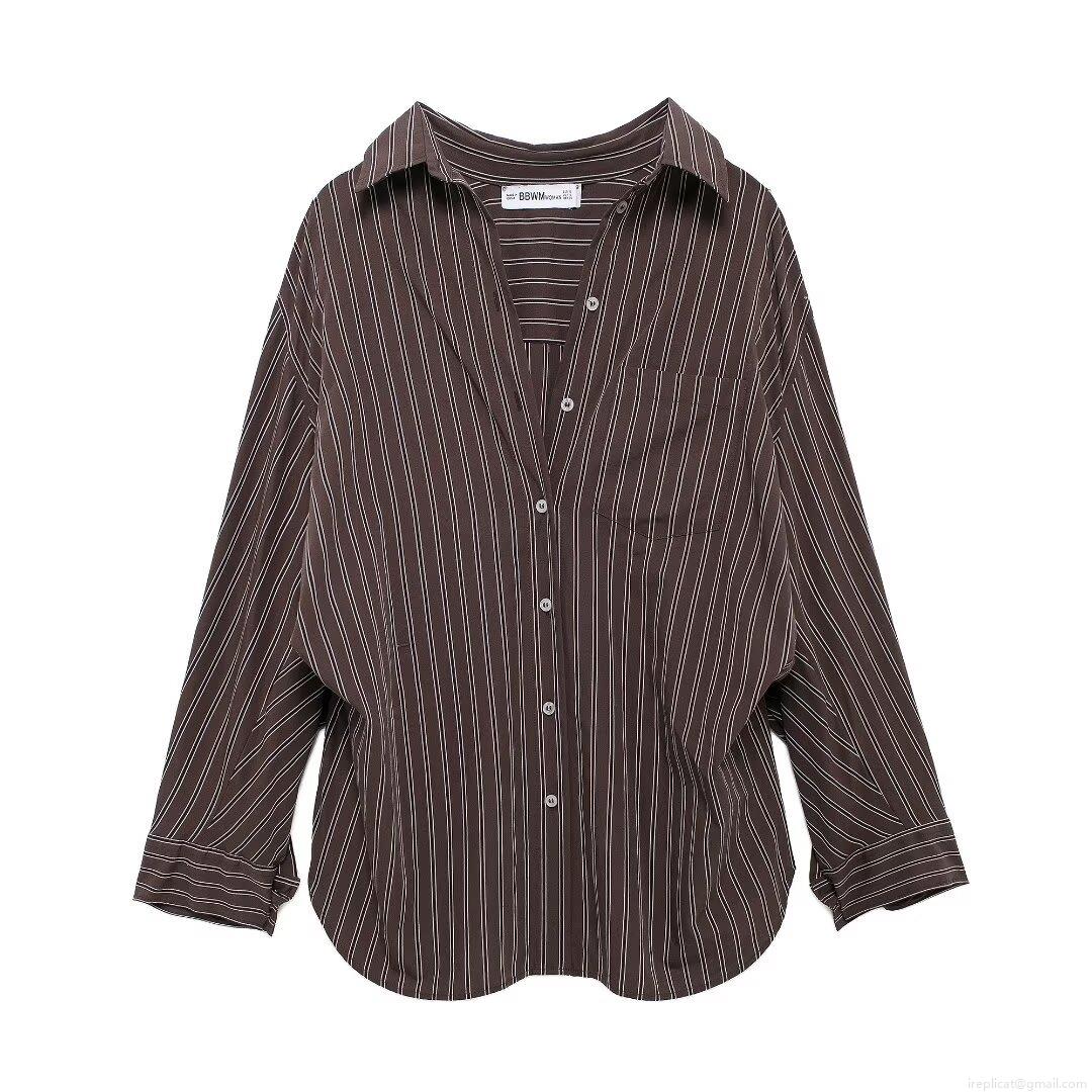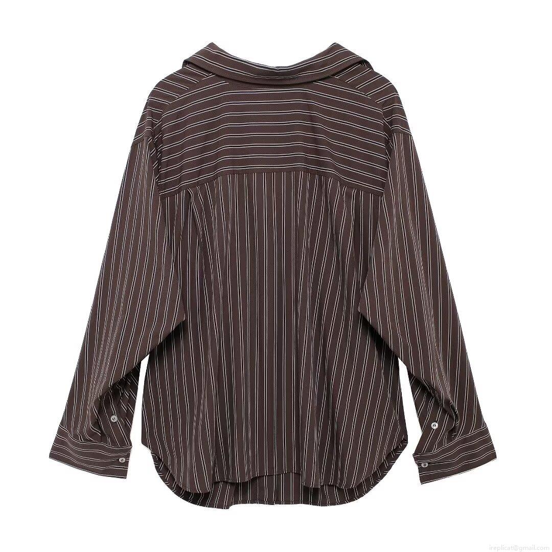 • Women's Fashion Striped Long Sleeve Button Down Shirt European American Style Oversized Polyester Blouse With Lapel Collar For Daily Office Wear