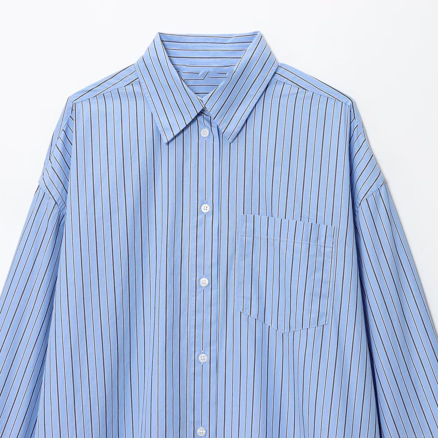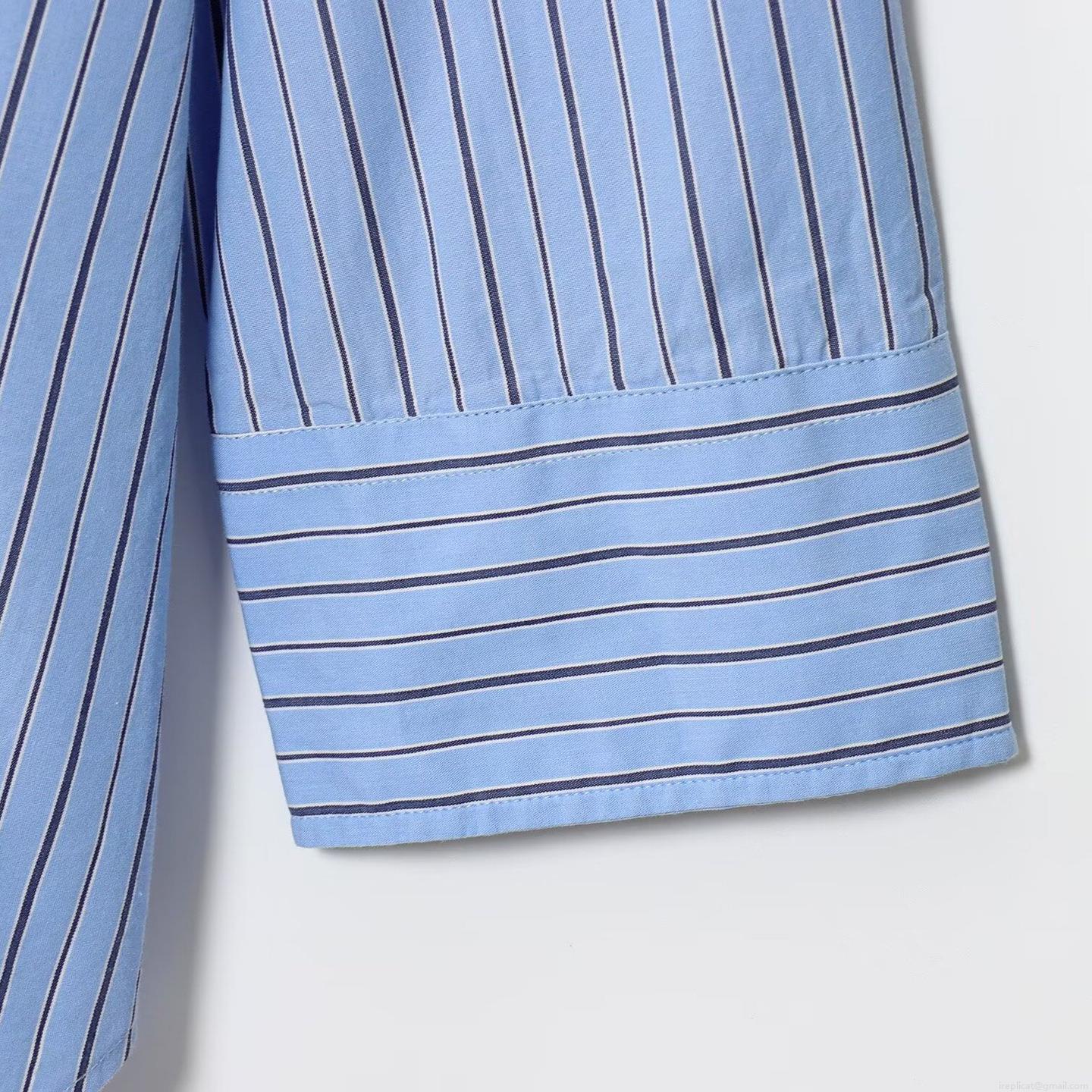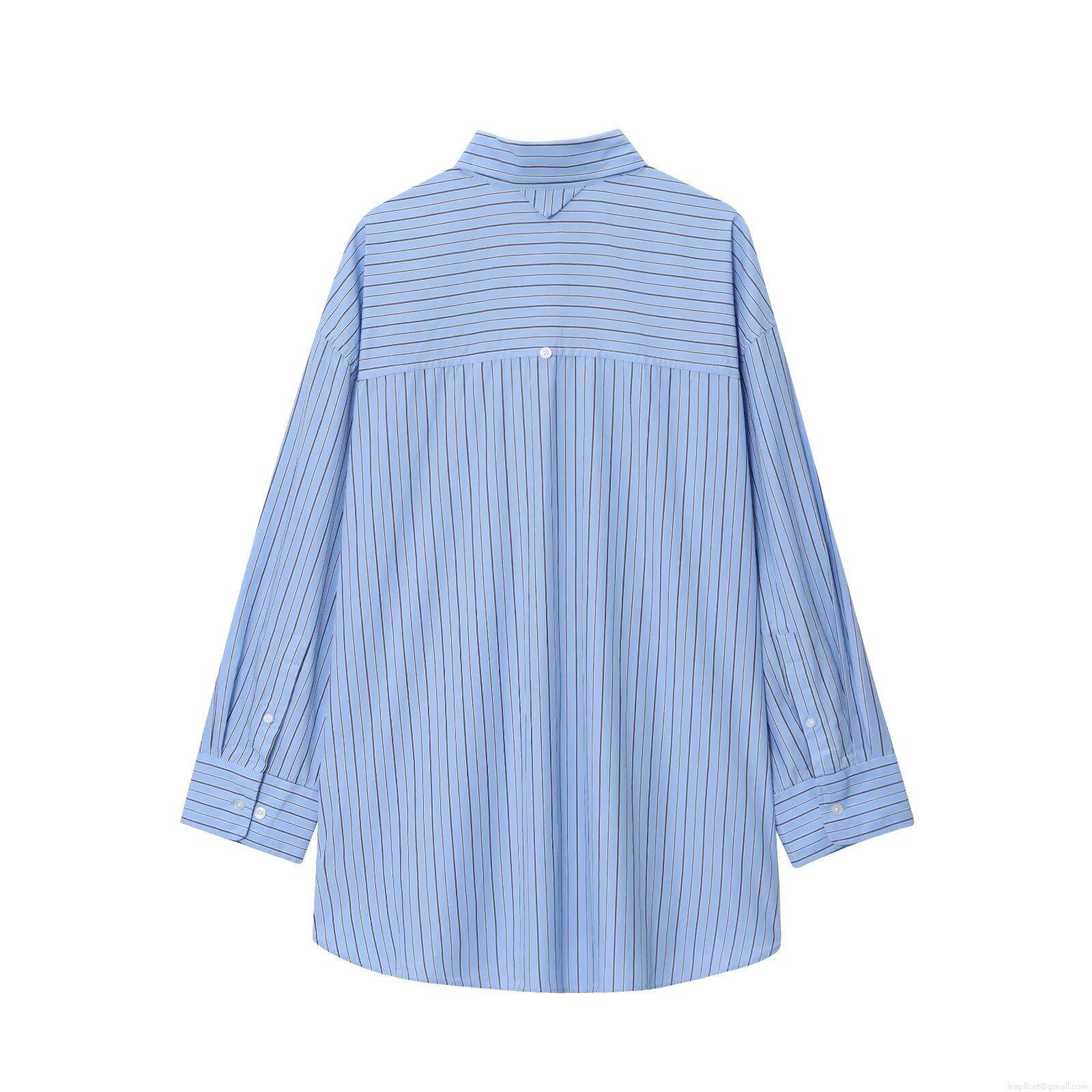 • Women's Fashion Striped Long Sleeve Poplin Shirt Casual Loose Button Down Blouse With Chest Pocket Lapel Office Lady Work Top