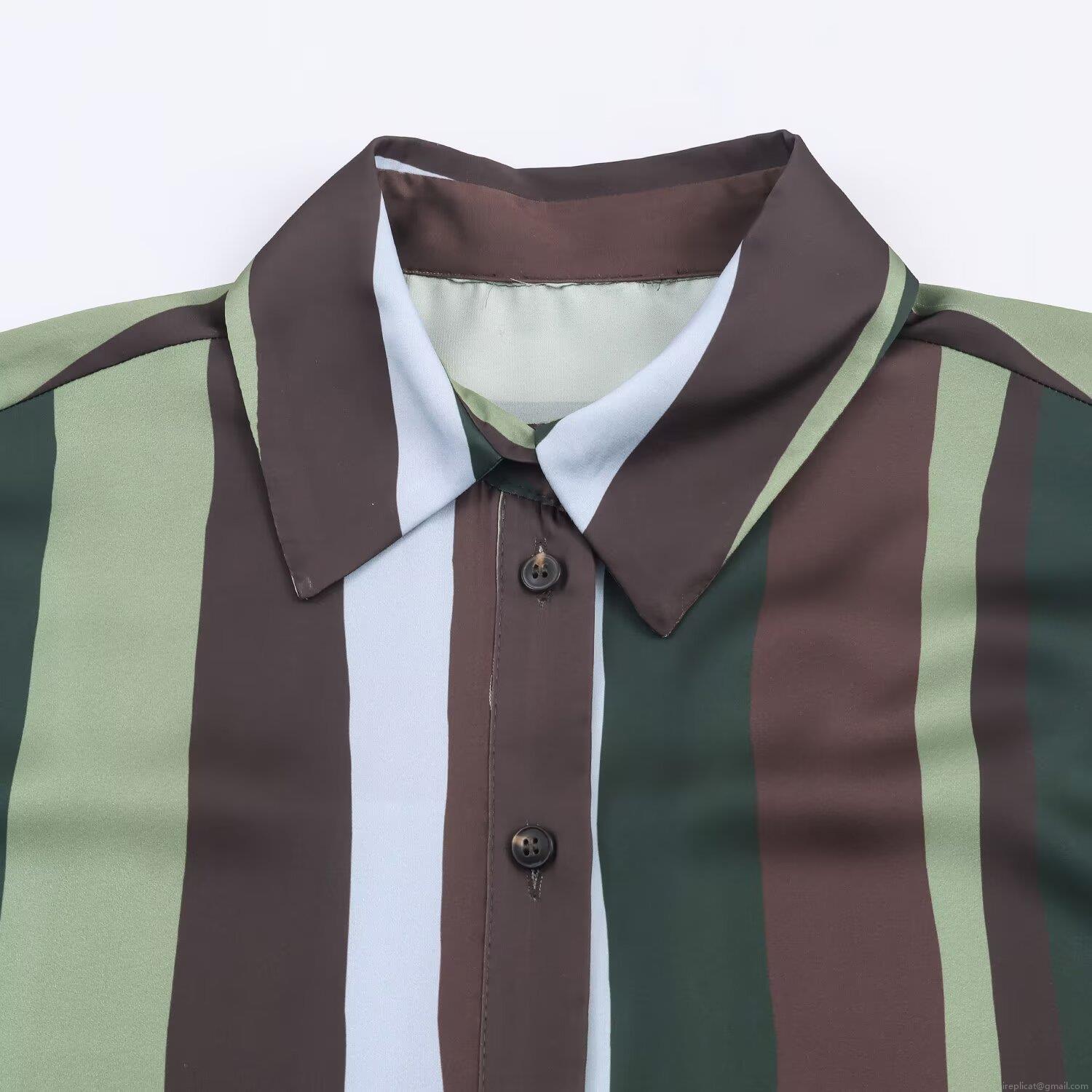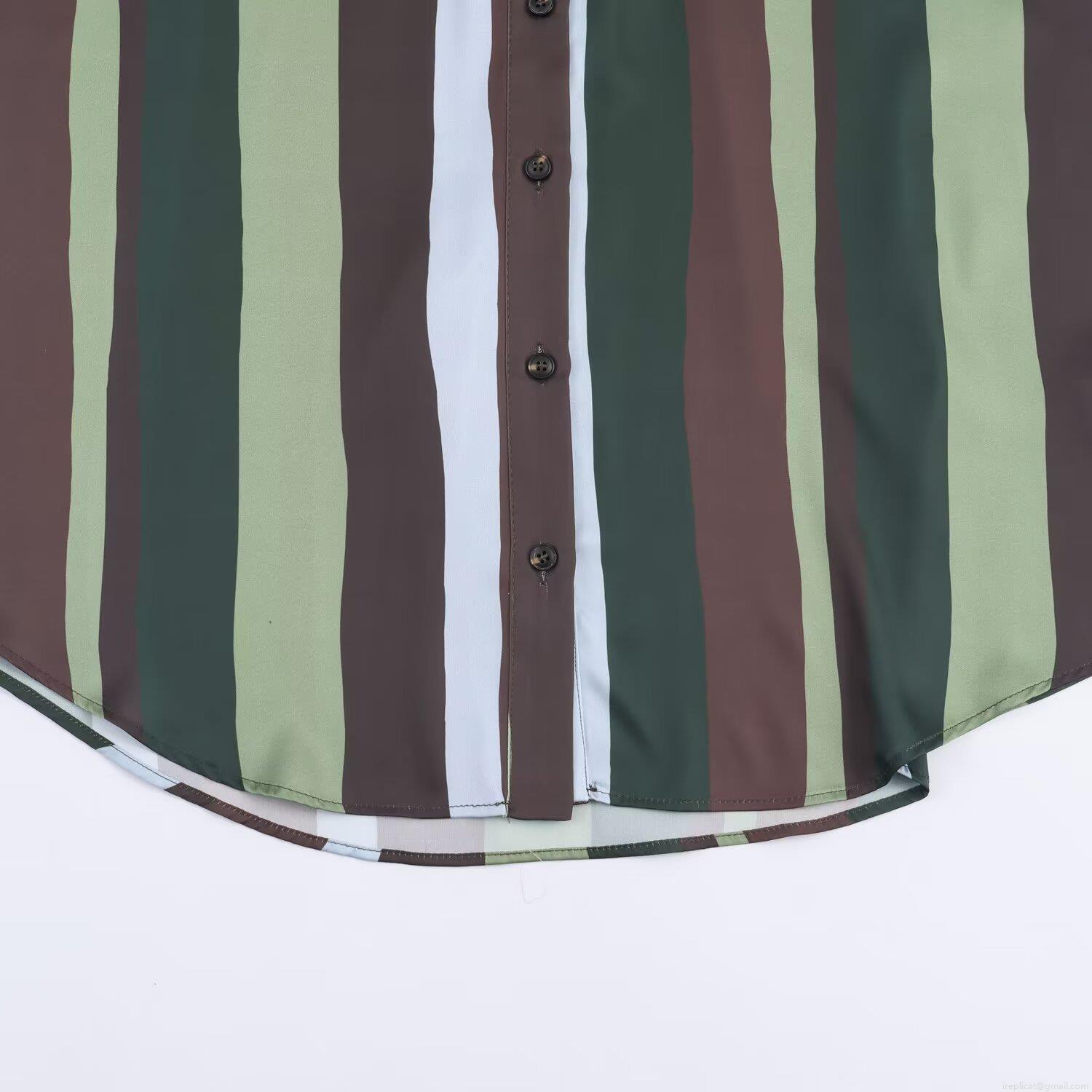 Women's Fashion Striped Satin Blouse Vintage Long Sleeve Floral Print Shirt Elegant Button Up Polo Collar Top Casual Office Silky Texture Ladies Clothing