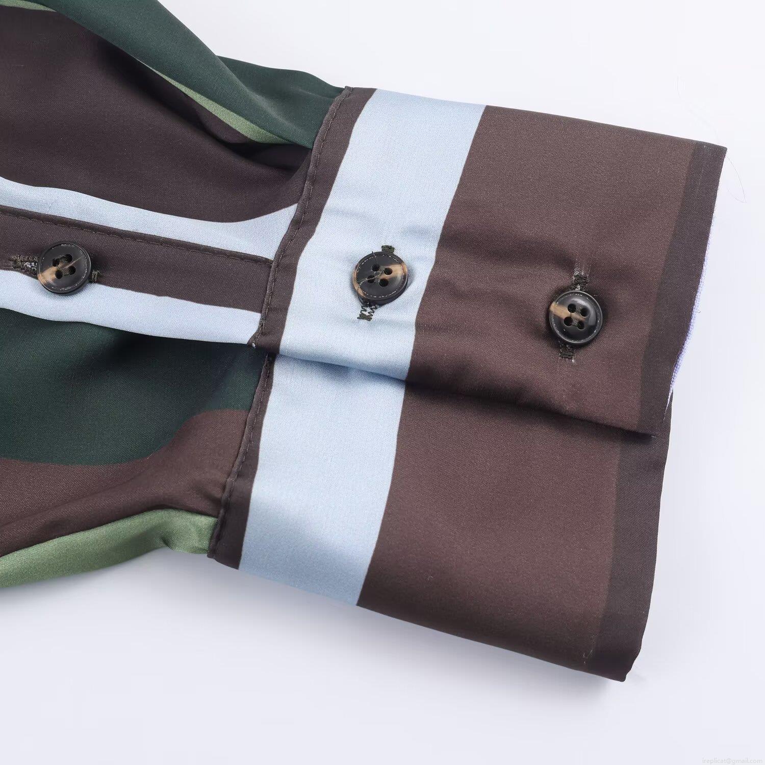 • Women's Fashion Striped Satin Blouse Vintage Long Sleeve Floral Print Shirt Elegant Button Up Polo Collar Top Casual Office Silky Texture Ladies Clothing