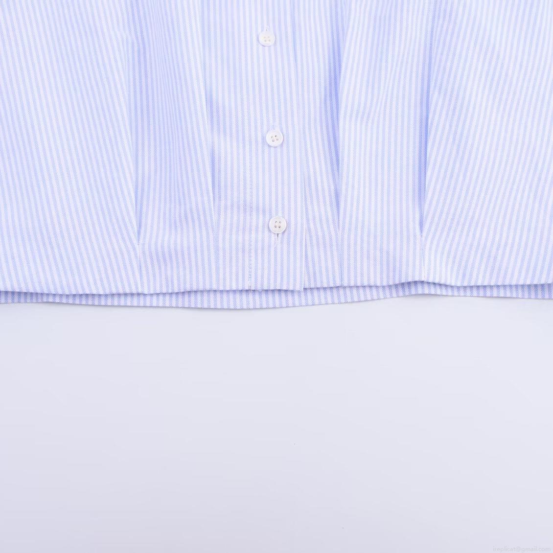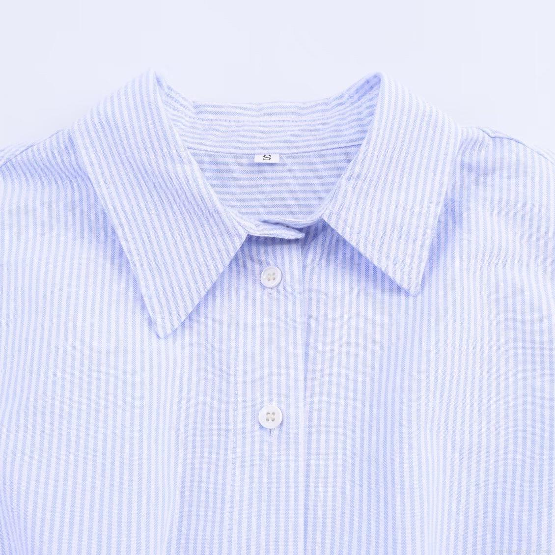 • Women's Fashion Striped Short Shirt Pleated Waist Turn-Down Collar Long Sleeve Blouse Casual Office Style Single-Breasted Polyester Spandex Top