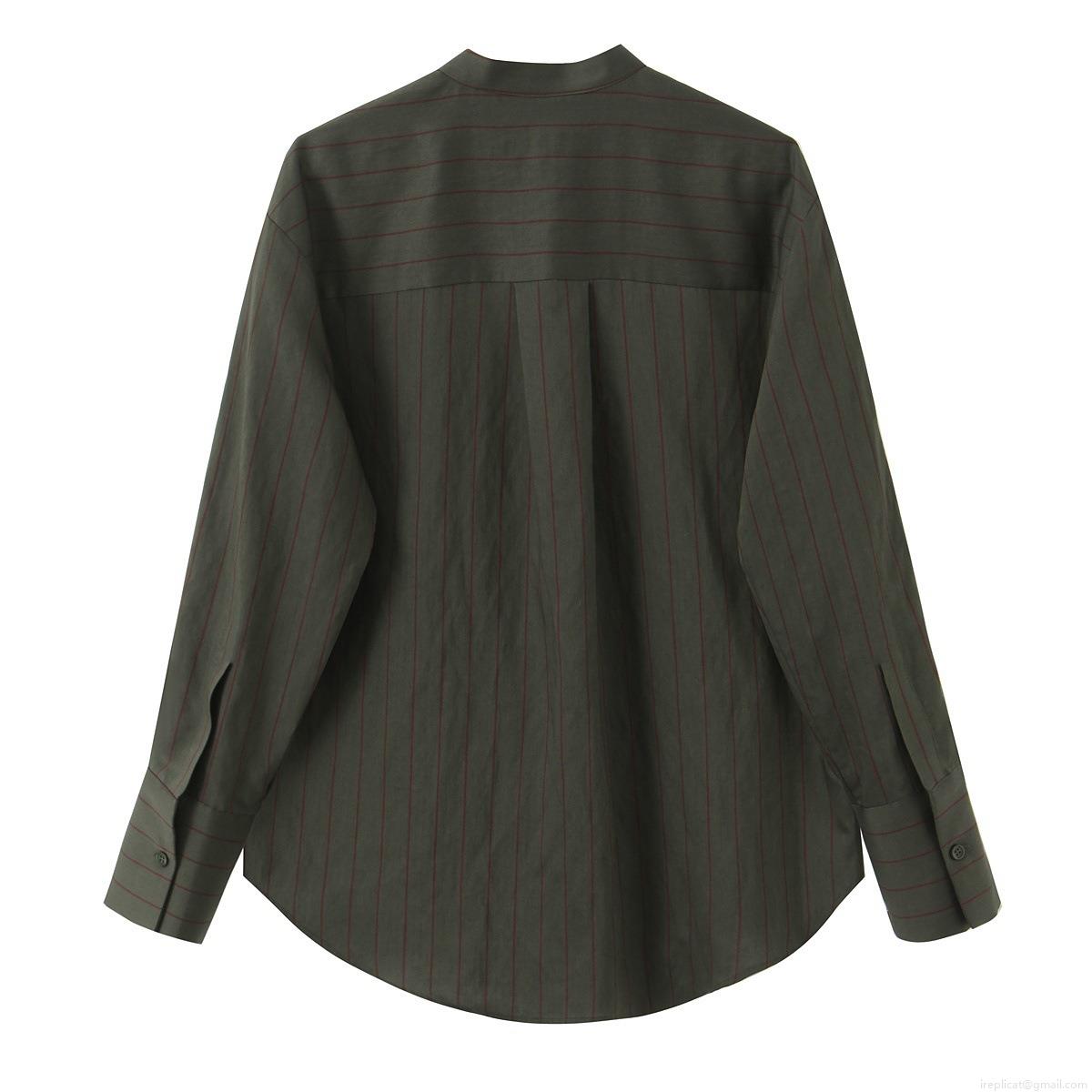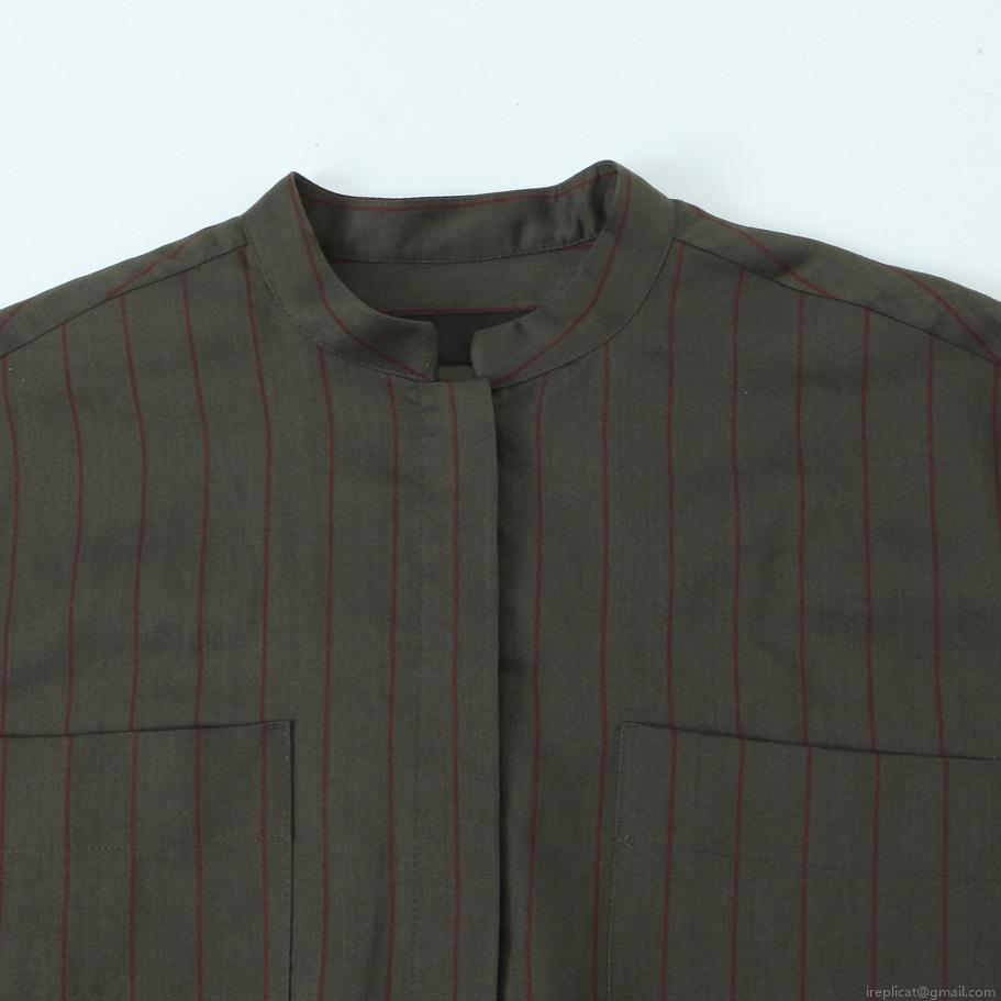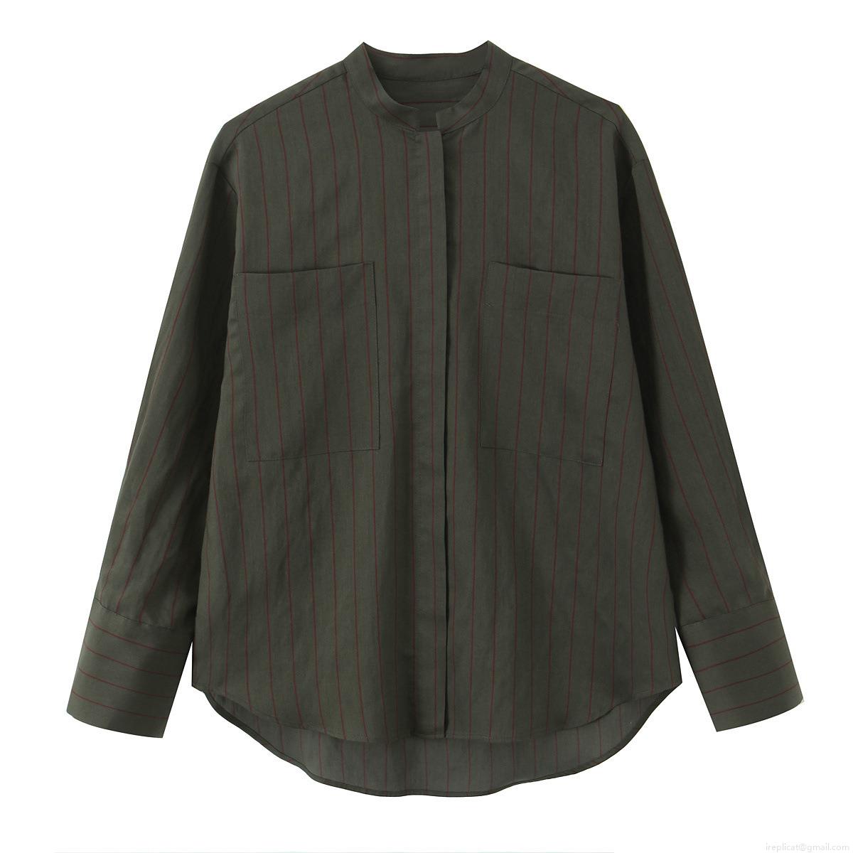 • Women's Fashion Striped Stand Collar Shirt Loose Long Sleeve Polyester Blouse With Double Pockets Casual Office Top