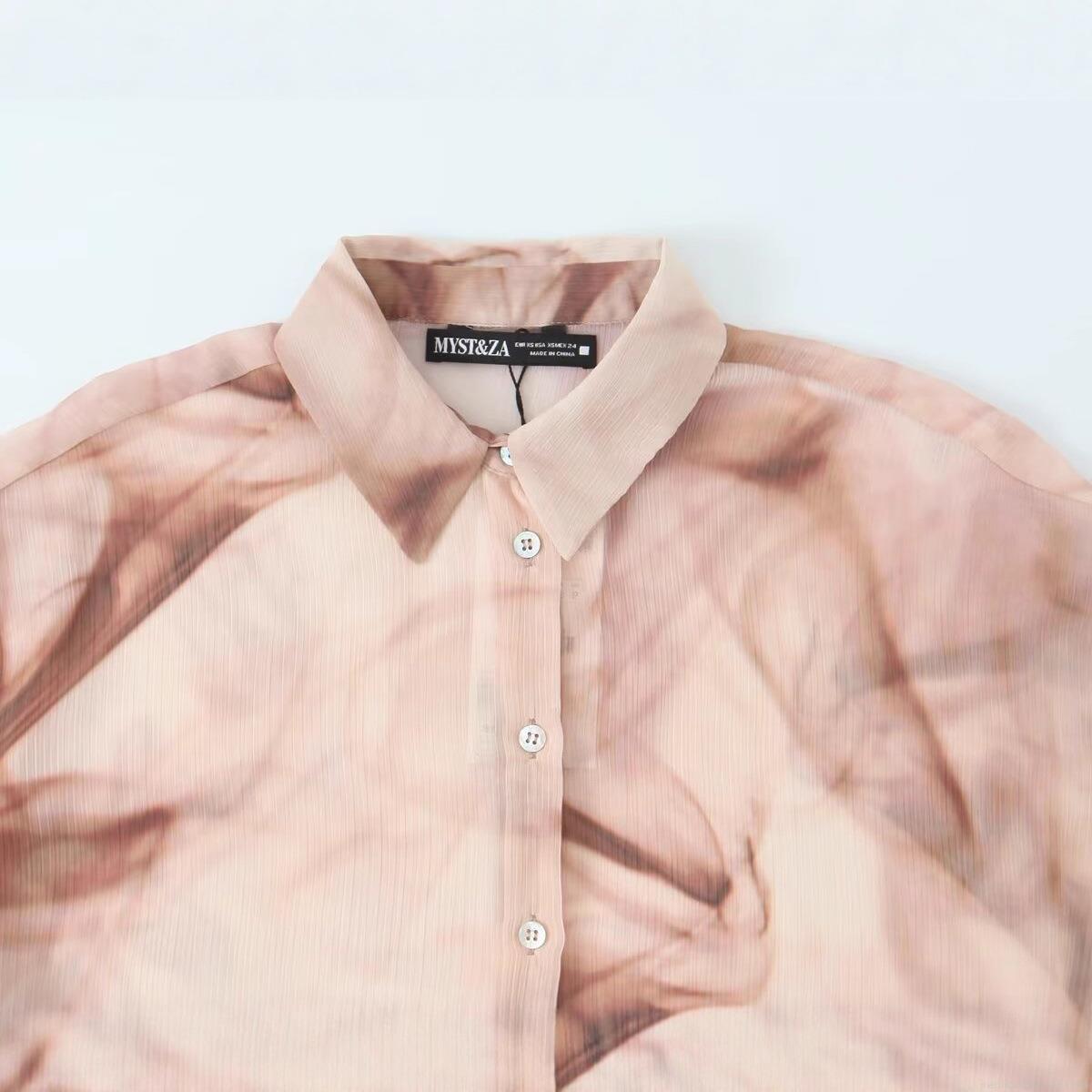 • Women's Fashion Tie-Dye Marble Print Chiffon Long Sleeve Shirt Elegant Button Down Blouse With Shirt Collar For Casual Office Daily Wear