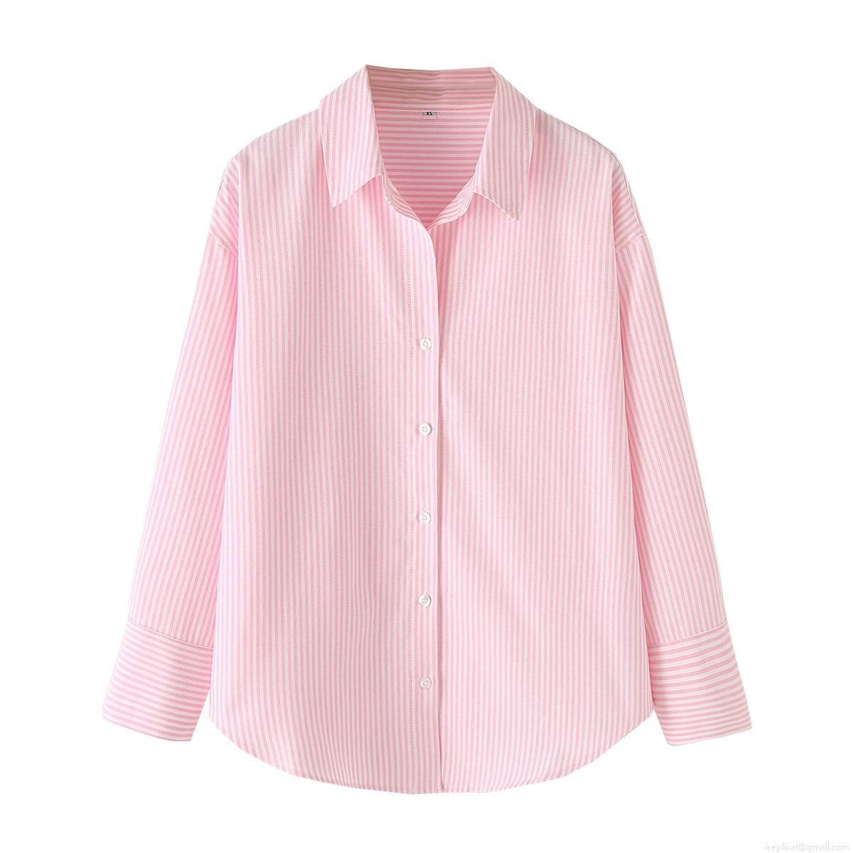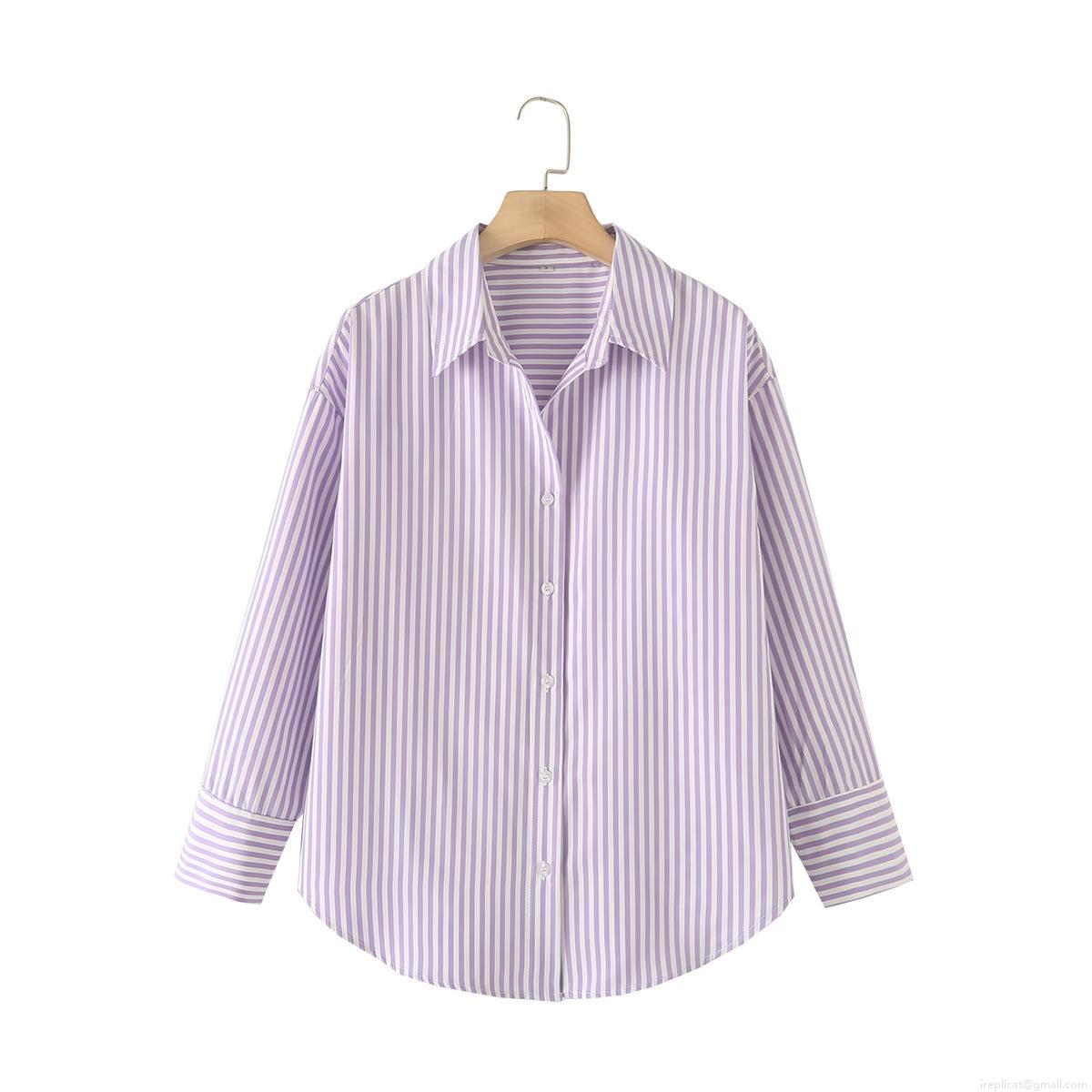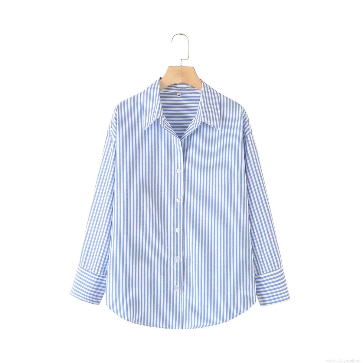 • Women's Fashion Two-Tone Striped Poplin Shirt Autumn Long Sleeve Button Down Blouse Casual Streetwear Top For Women