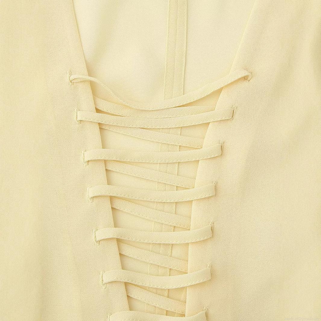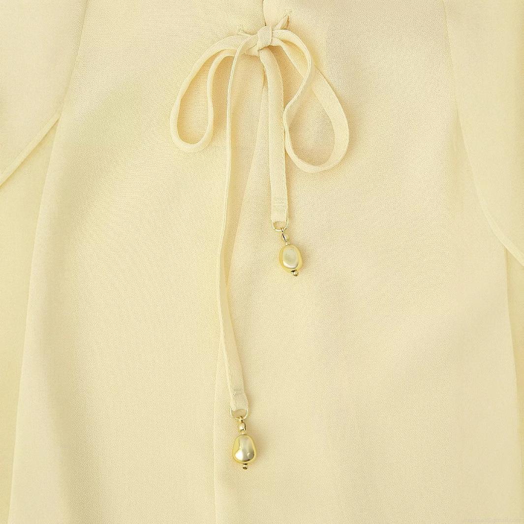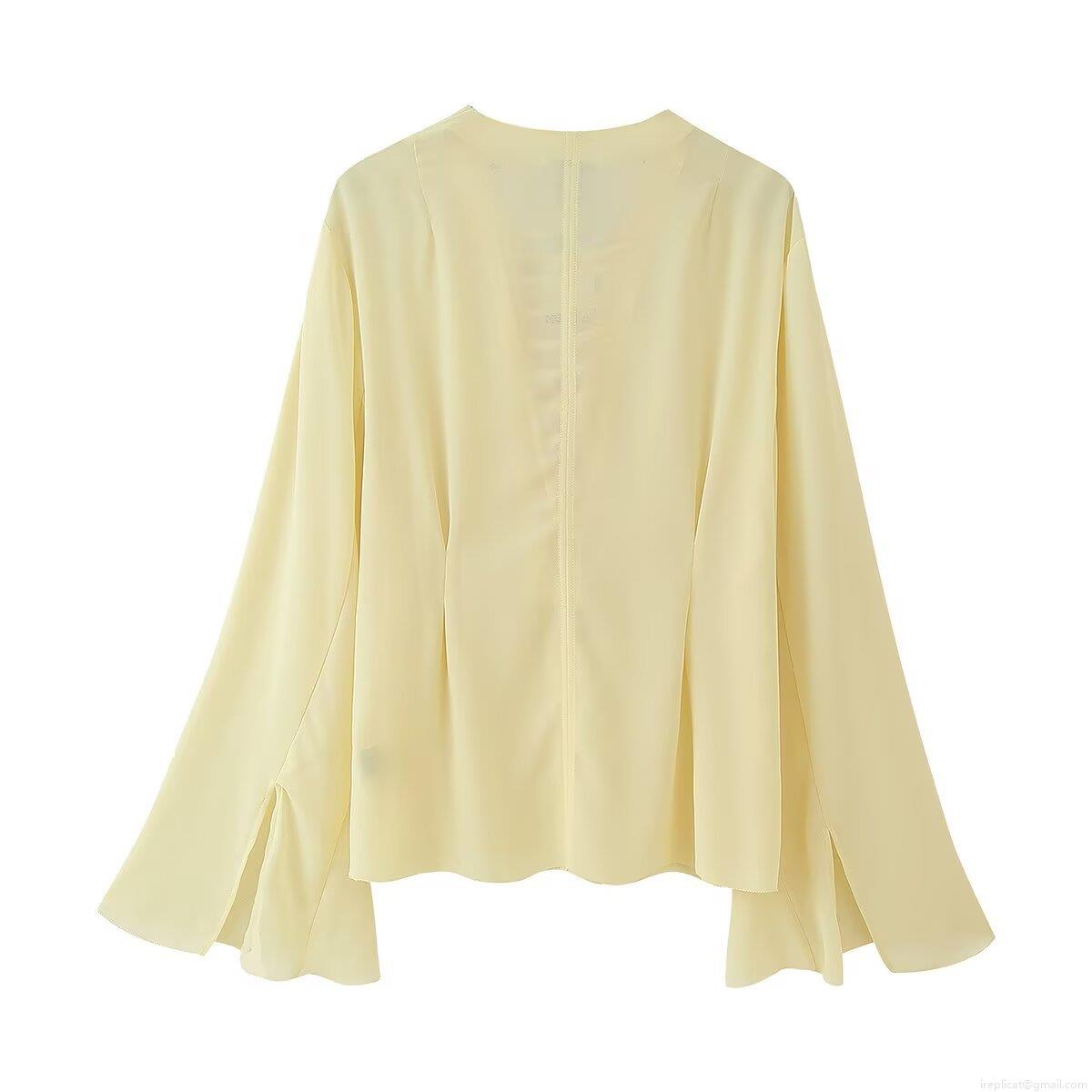 • Women's Fashion V-Neck Lace-Up Chiffon Blouse Elegant Long Bell Sleeve Pullover Shirt Solid Color Summer Casual Streetwear Top For Ladies