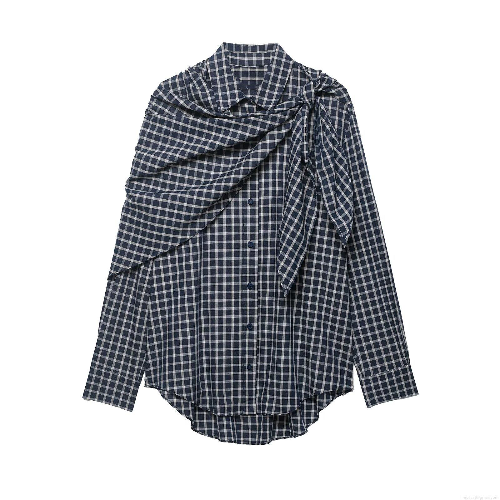 • Women's Fashion Winter Plaid Shirt Casual Asymmetric Shawl Knotted Checkered Blouse Long Sleeve Polo Collar Polyester Spandex Blend Tops Women Office Daily