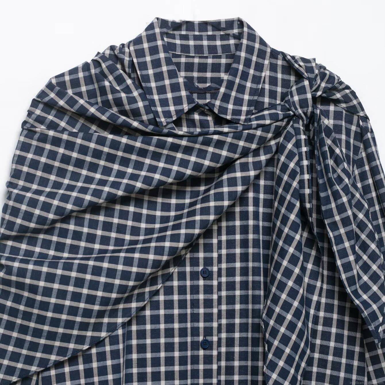 Asymmetric, Checkered Pattern, Pleats, Single-breasted, Tie-waist Shawl