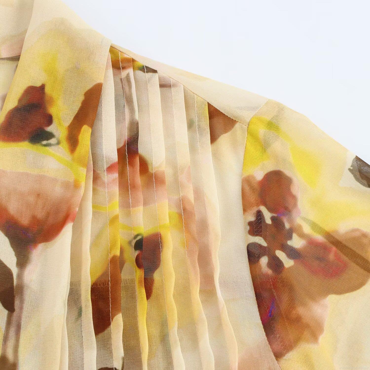 Women's Floral Print Chiffon Blouse Elegant Long Sleeve Tie Neck Pleated Shirt Casual Loose Tops for Women