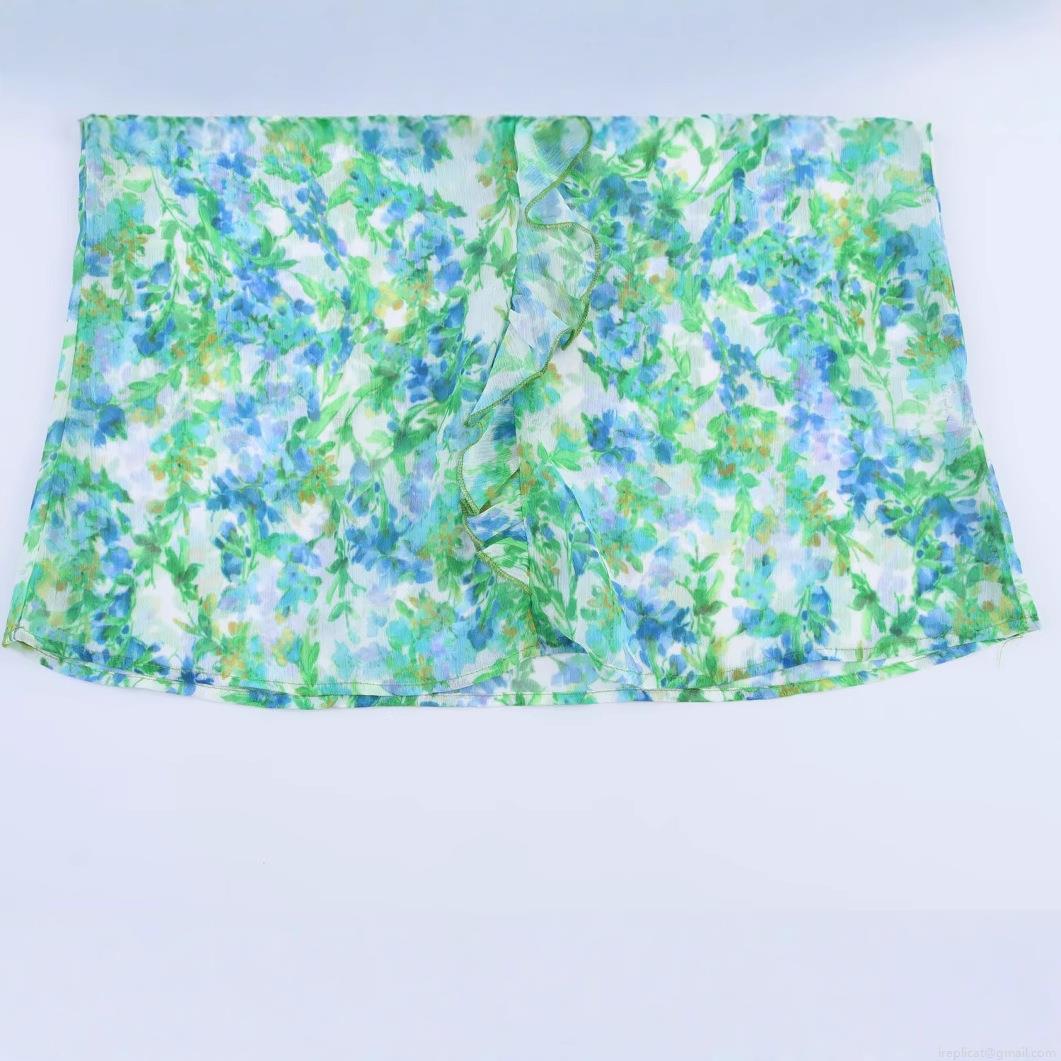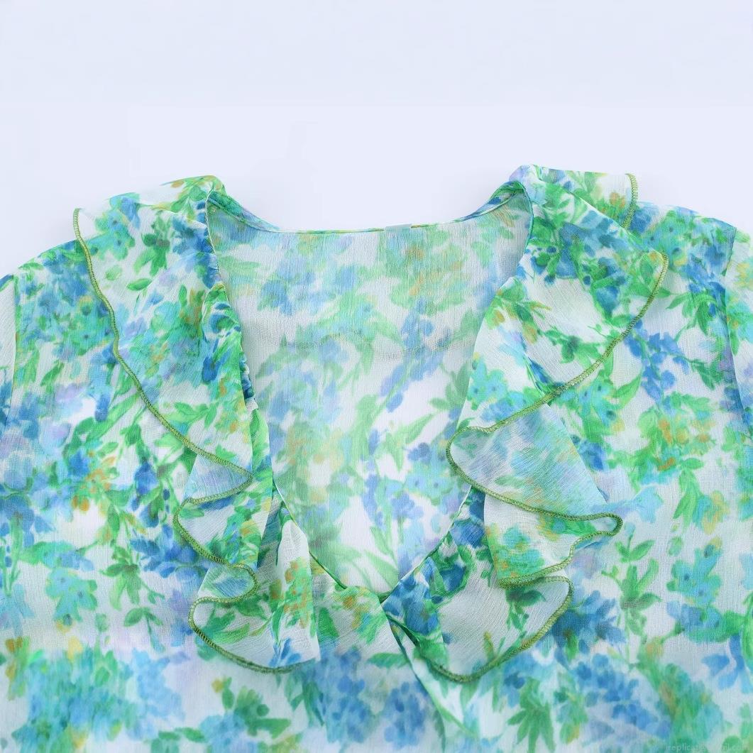 Floral Pattern, Ruffles, Printing, Layered Decoration, Abstract Flowers, Elastic Cuffs