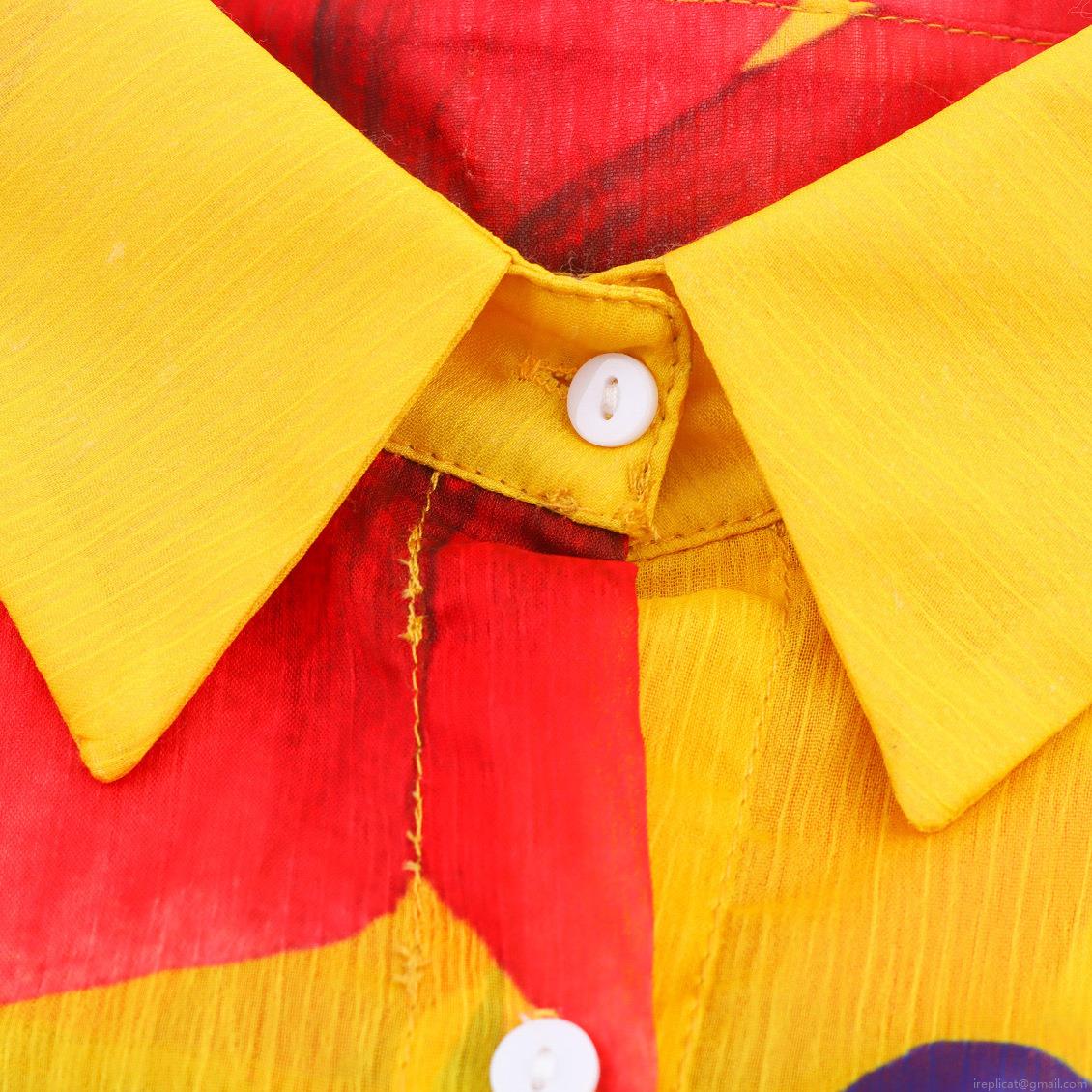 • Women's Floral Print Chiffon Blouse Yellow Flare Sleeve Lapel Button Up Top Boho Style Casual Shirt For Women Spring Summer Lightweight