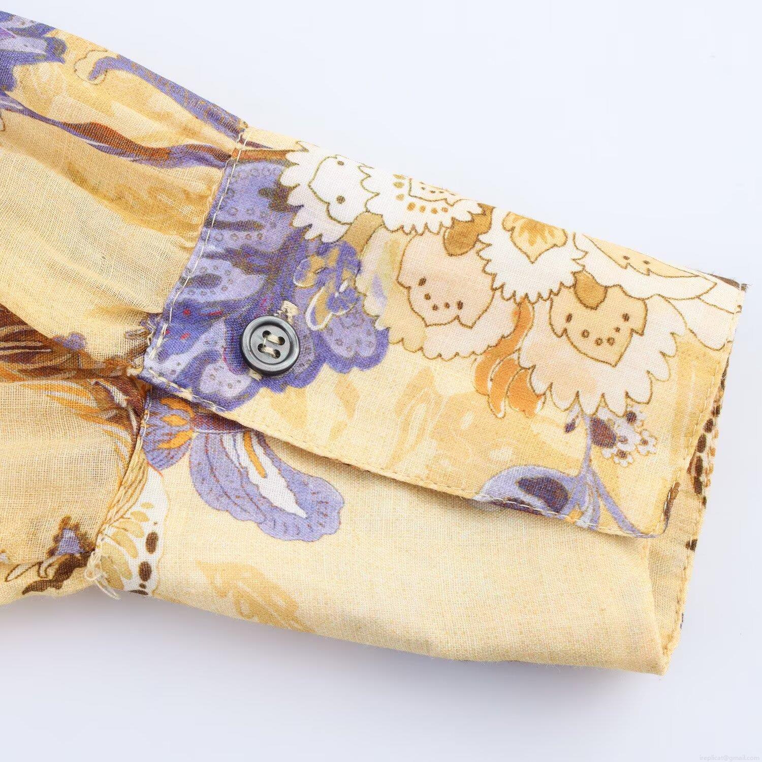 • Women's Floral Print Linen Blend Long Sleeve Shirt Summer Loose Fit Polo Neck Button Down Blouse Casual Vacation Commute Elegant Tops