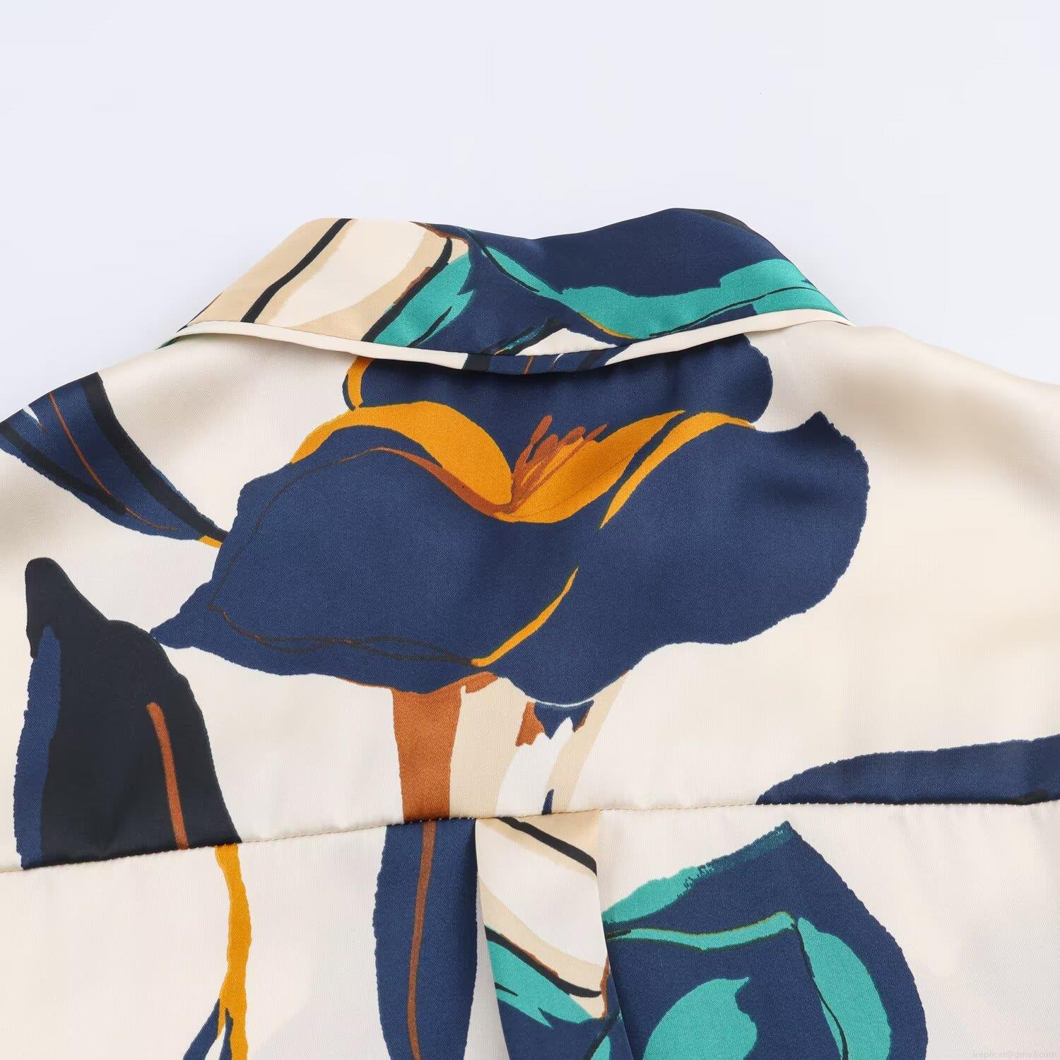 • Women's Floral Print Satin Shirt Elegant Long Sleeve Button Down Blouse Vintage Cream Abstract Tops For Office Daily Party Lady Fashion