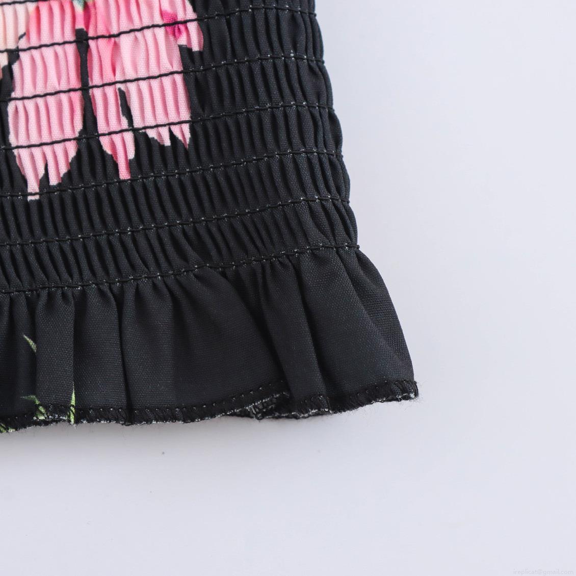 Ruffles, Plants And Flowers, Puff Sleeves, Square Collar, Invisible Zipper, Flexible Haul, Colorful Large Flowers