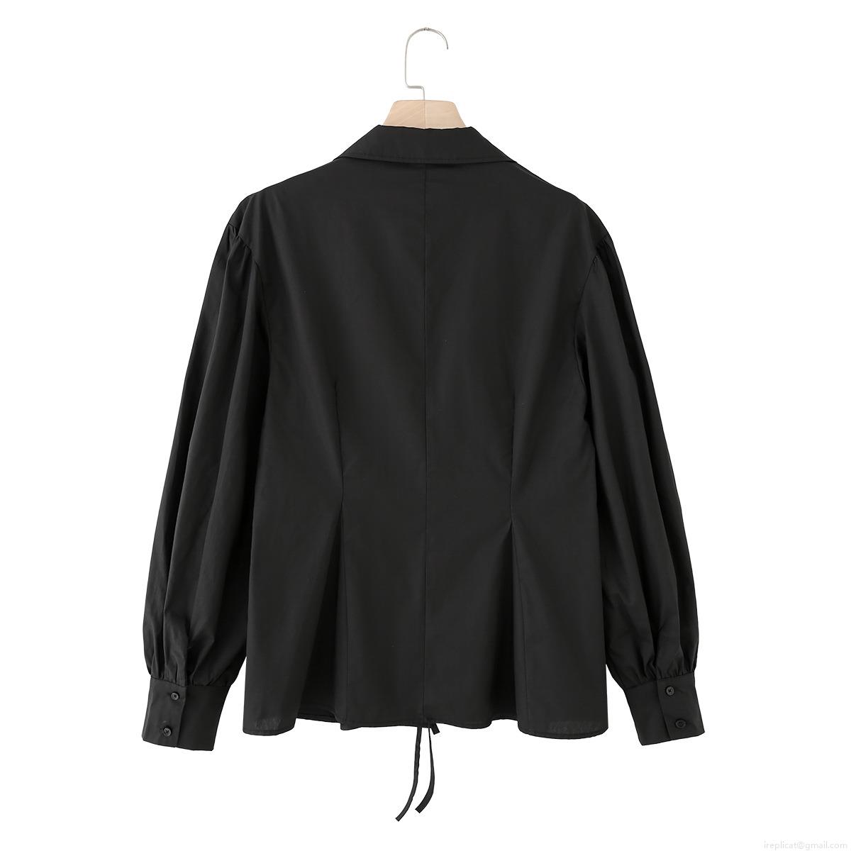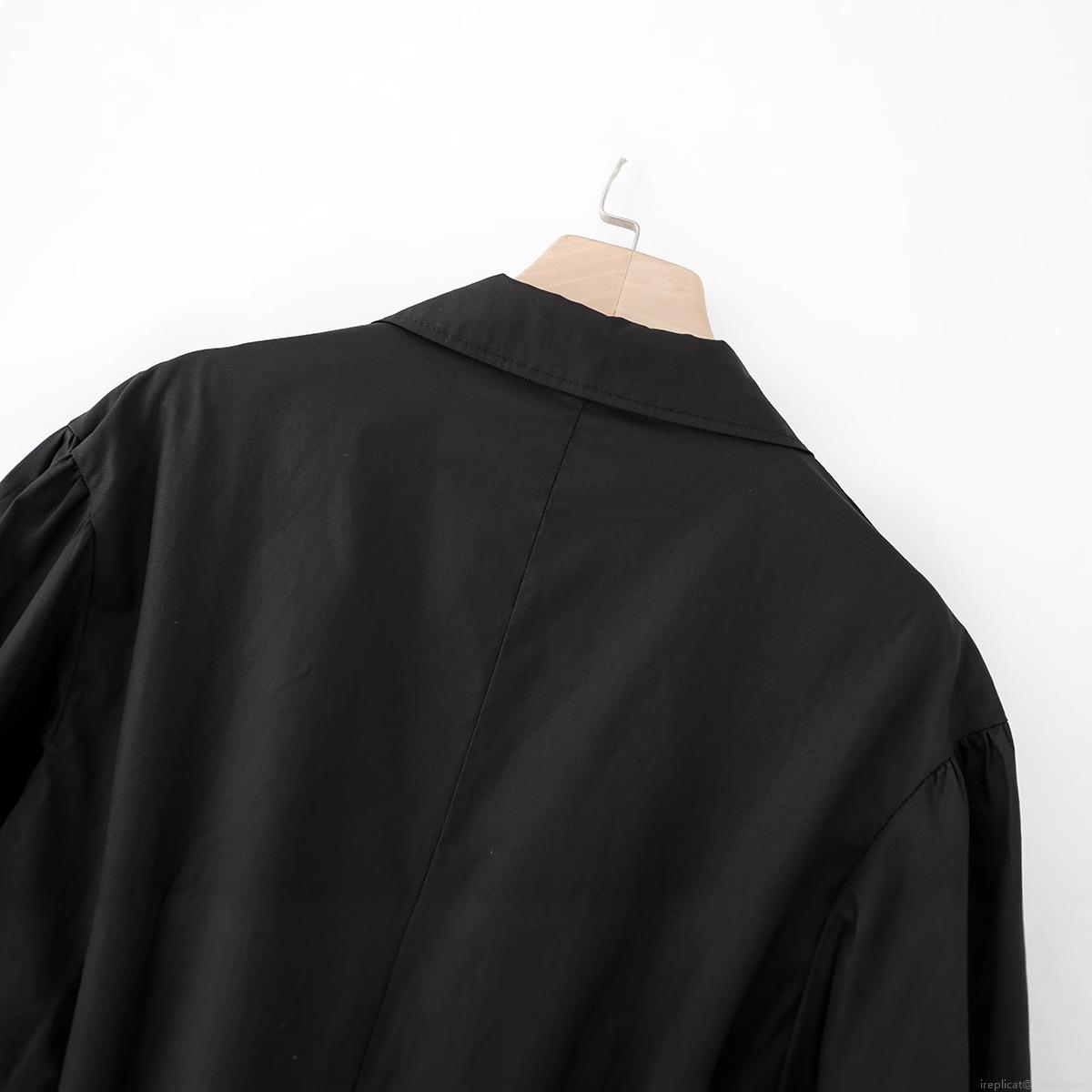 Puff Sleeves, Waist Pleats, Three Sets Of Bow Ties On The Front