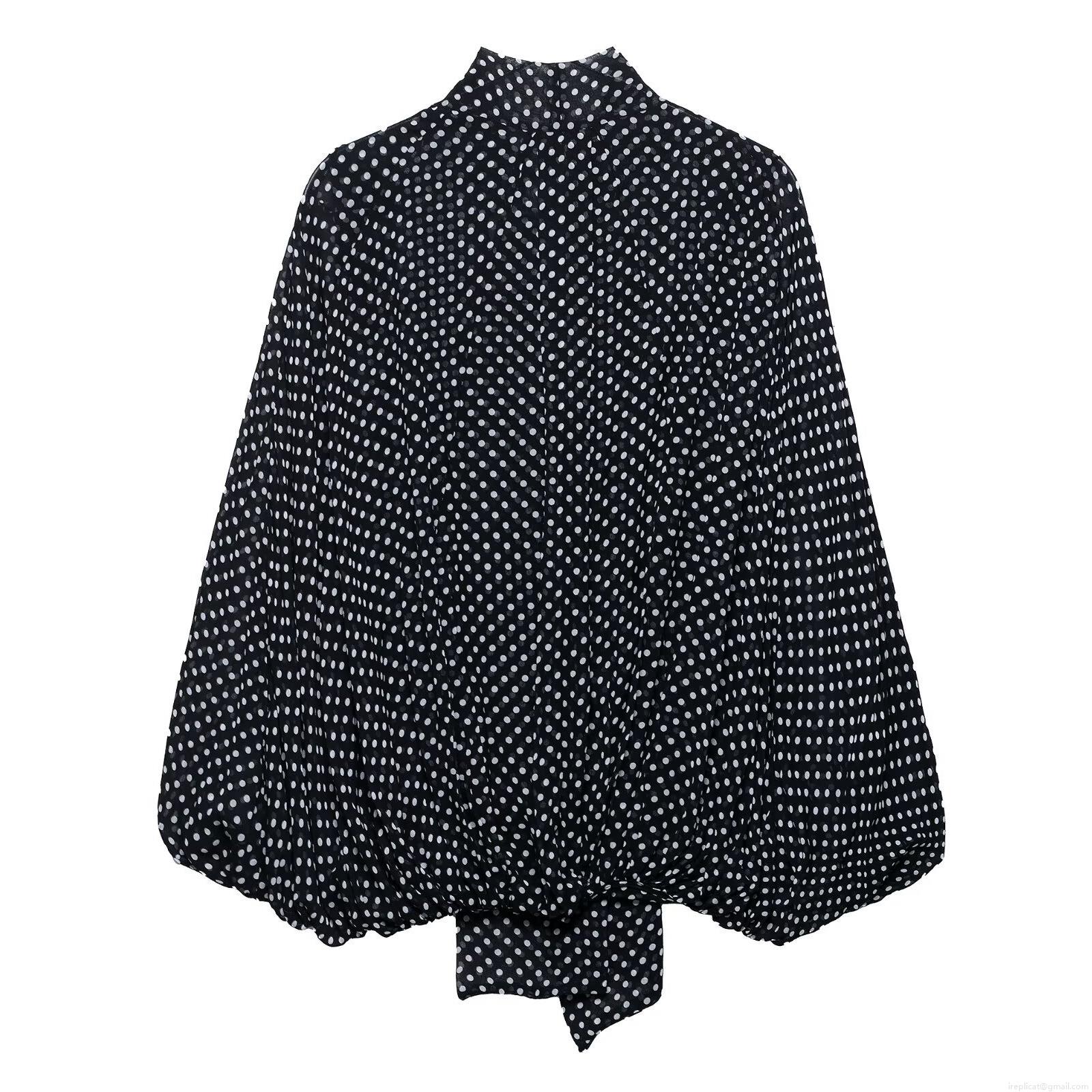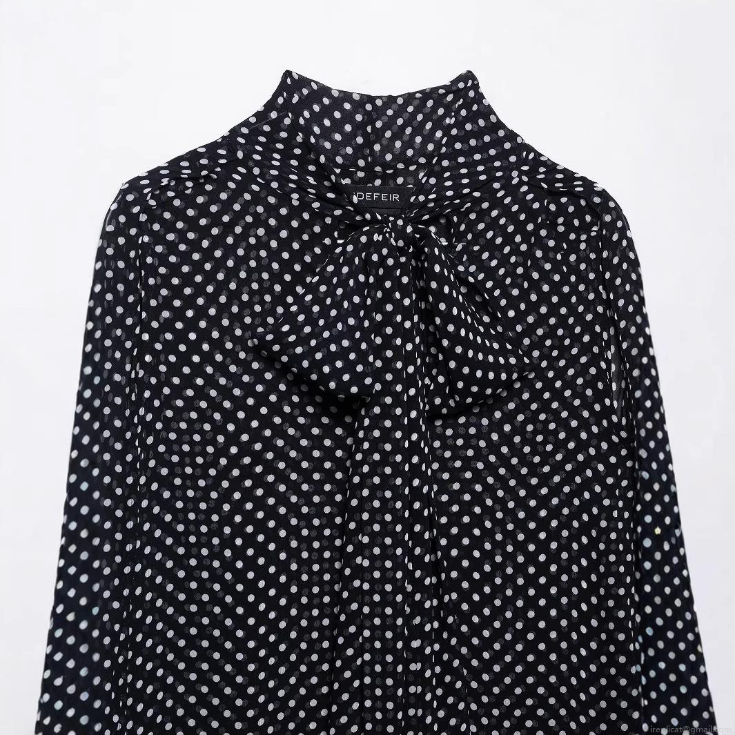 • Women's French Retro Polka Dot Chiffon Blouse Long Lantern Sleeve Tie-Neck Bow Shirt Elegant Commuter Tops For Women Office Wear