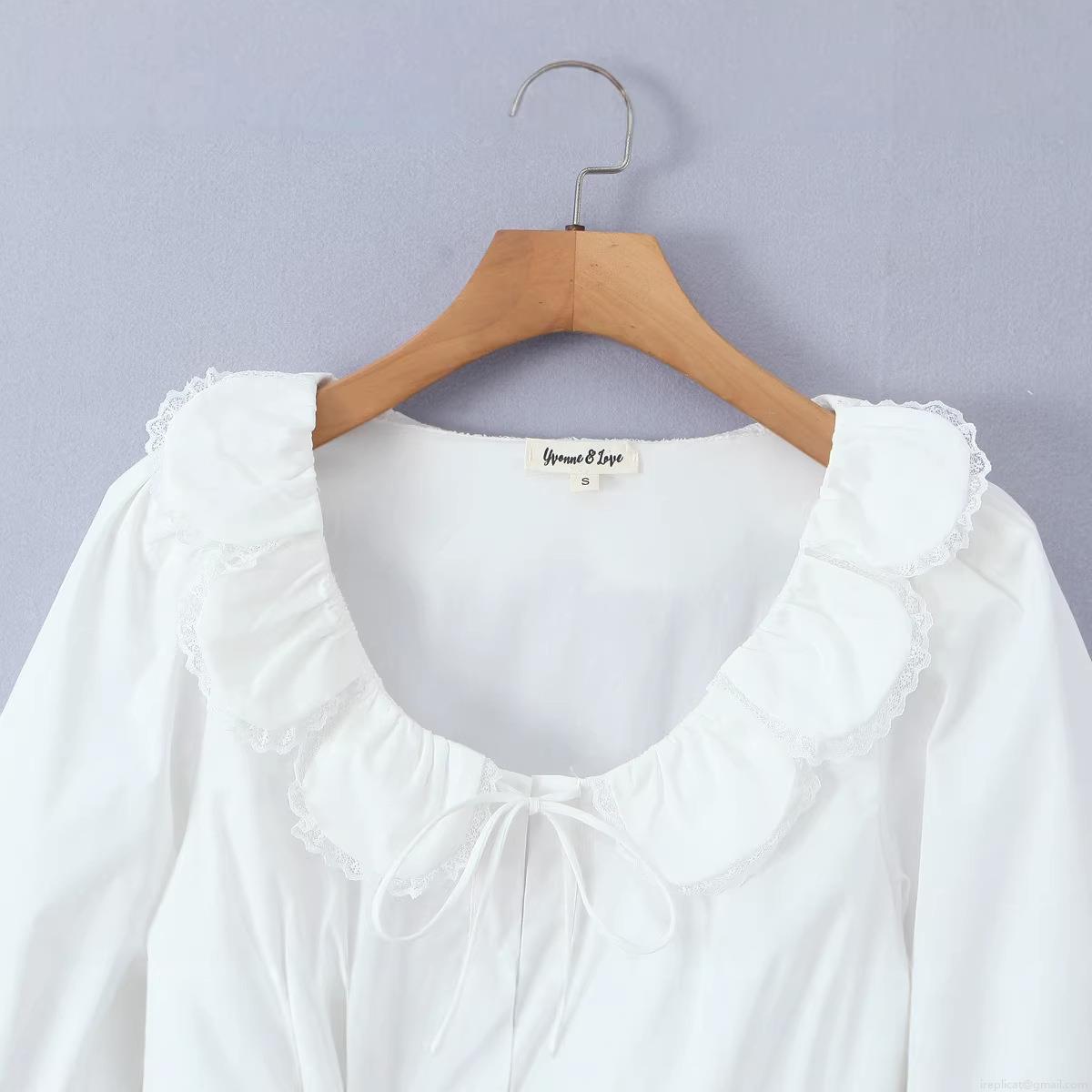 Solid Color, Lace, Pleats, Ruffles, Puff Sleeves