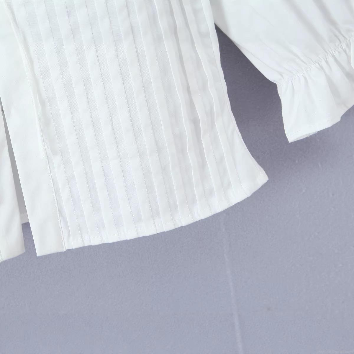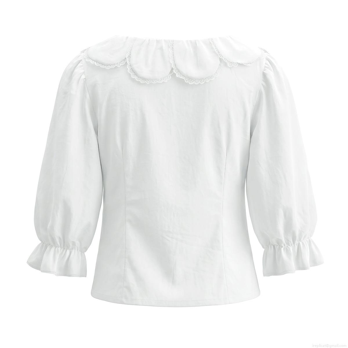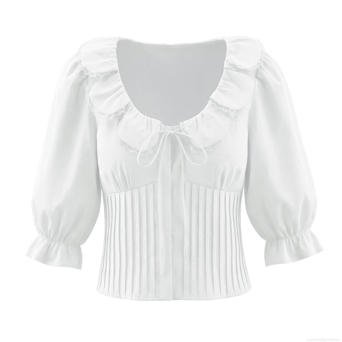 • Women's French Retro White Blouse Cotton Blend Lace Patchwork Pleated Smocking Square Neck Puff Sleeves Bow Tie Casual Summer Shirt Tops