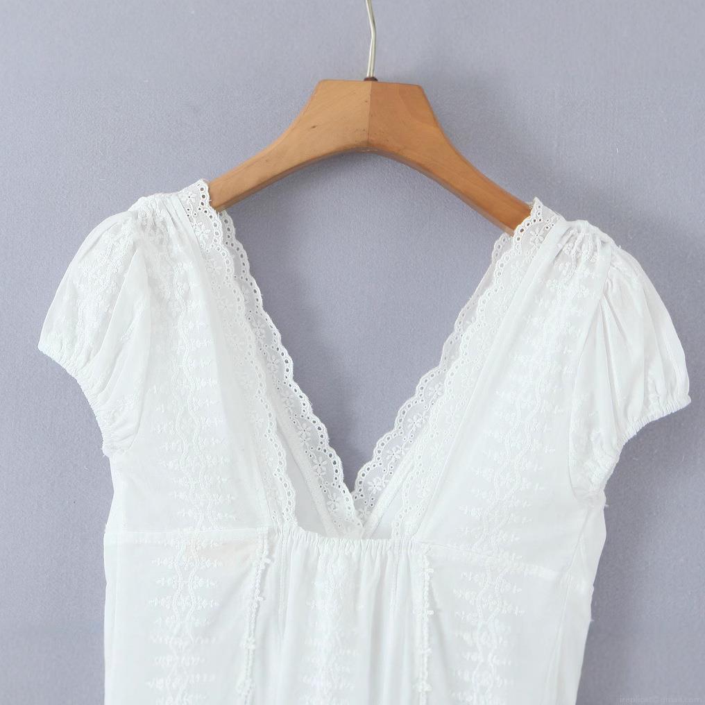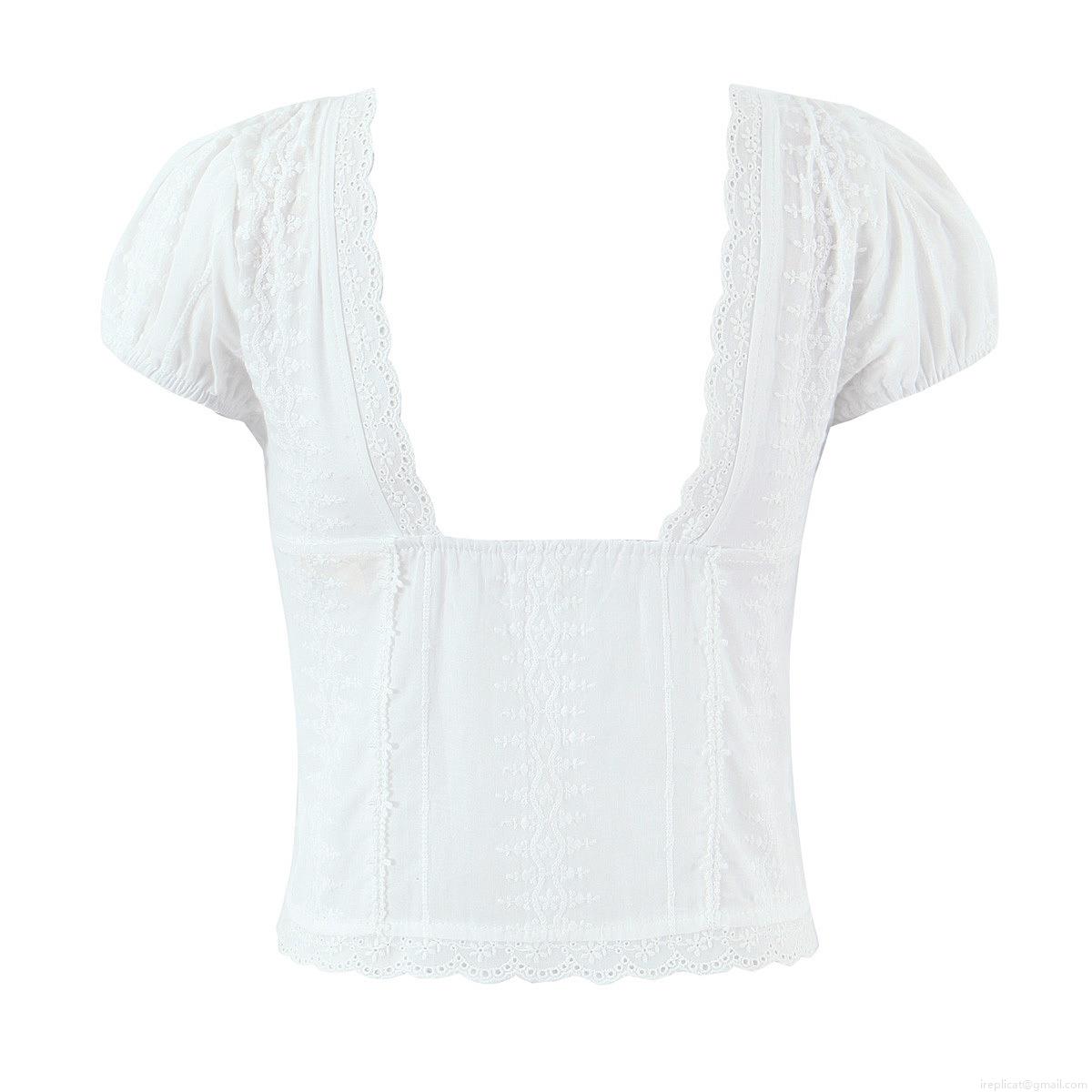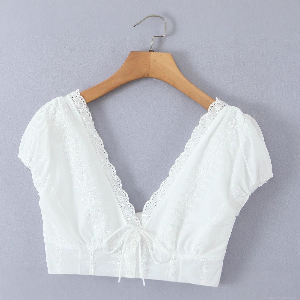 • Women's French Retro White Lace V-Neck Tie-Up Blouse Top Cotton Embroidery Puff Short Sleeve Summer Streetwear Fashion Aesthetic