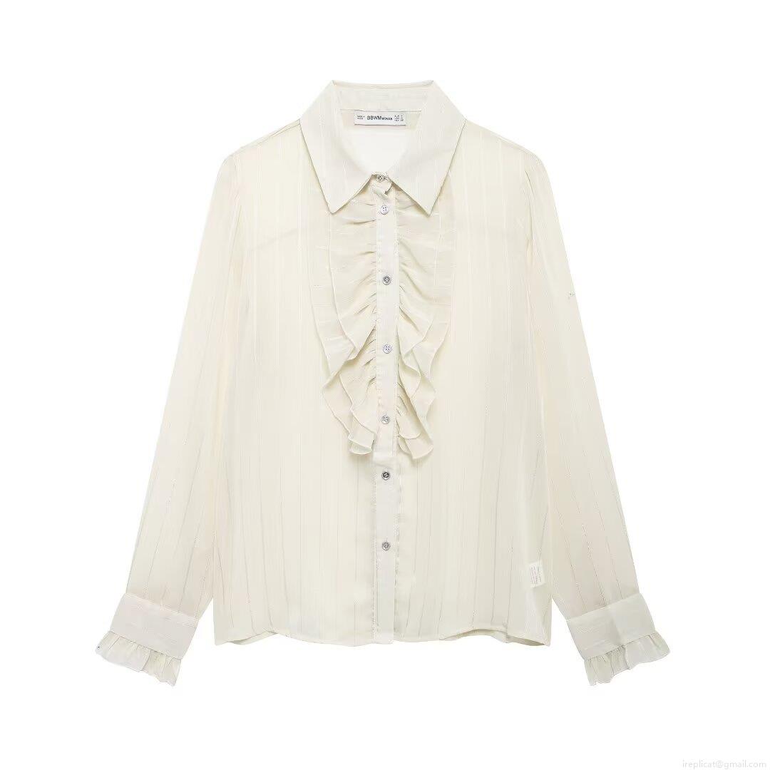 Solid Color, Wood Ear Edge, Ruffles, Vertical Stripes, Petal Sleeves