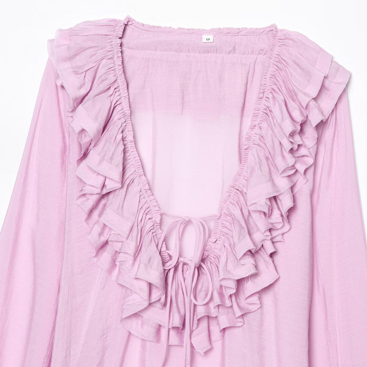 Solid Color, Pleats, Ruffles, Lace-up Design, Layered V-neck
