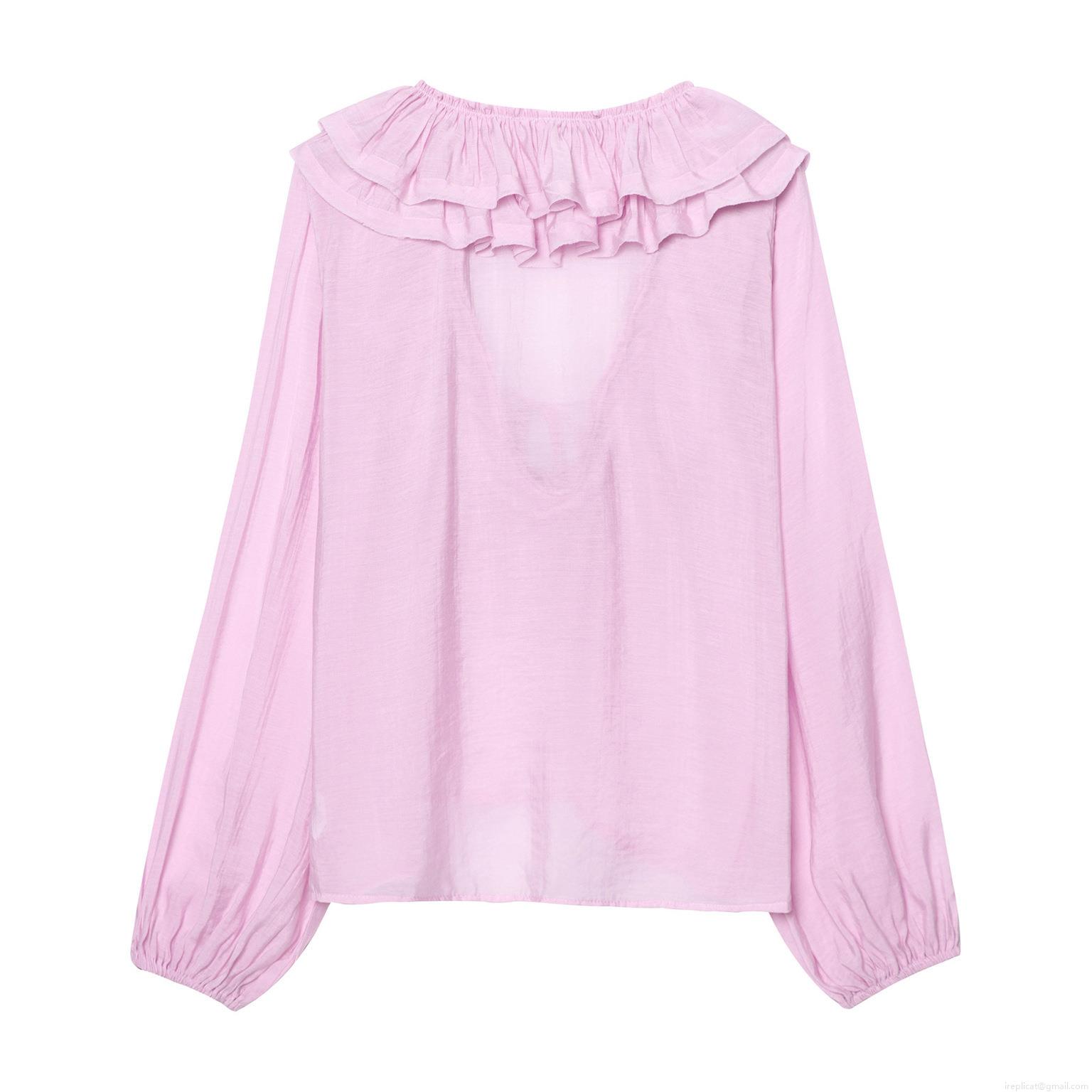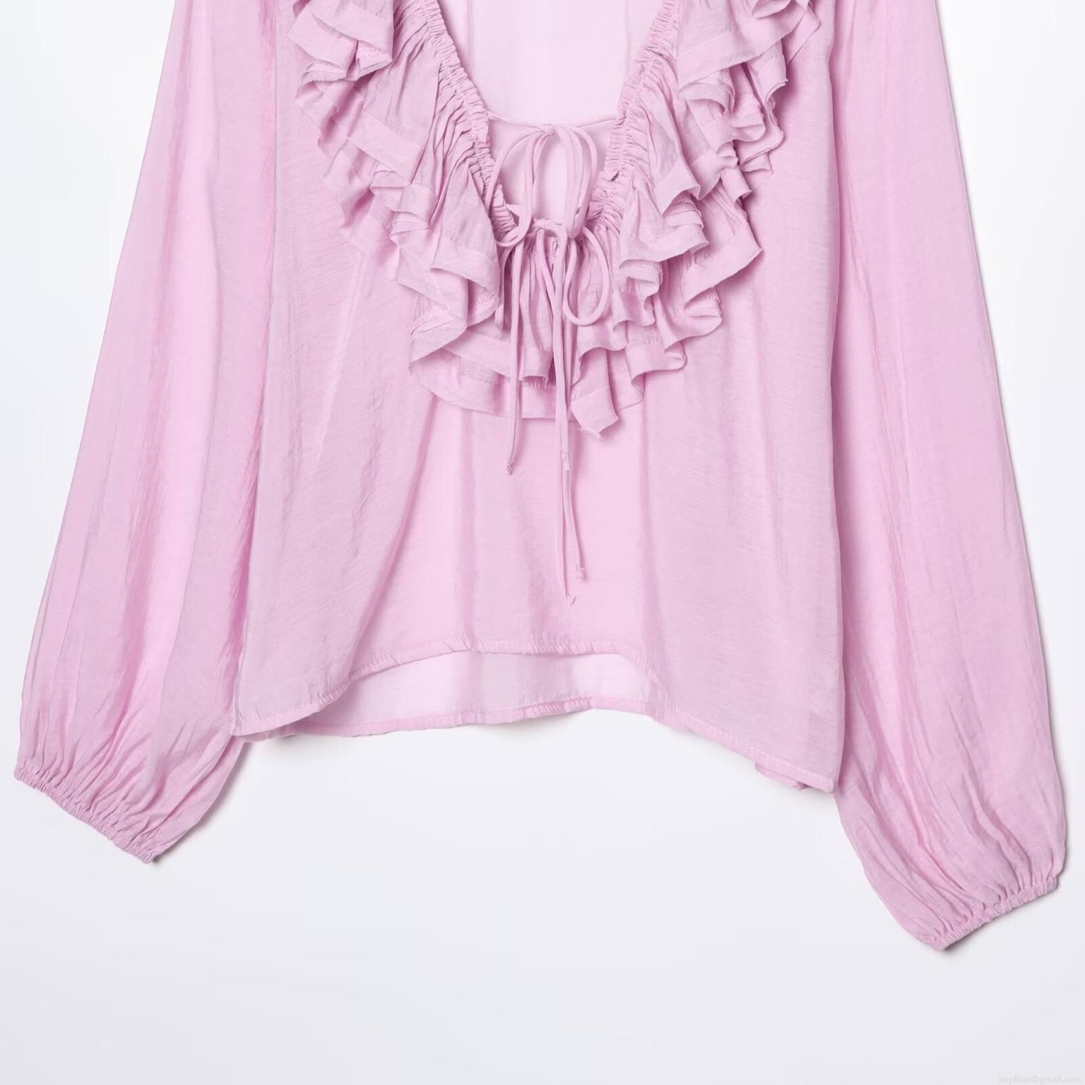 • Women's French Style Ruffle V-Neck Blouse Elegant Long Sleeve Polyester Spandex Solid Color Shirt For Office Dating Party Ladies