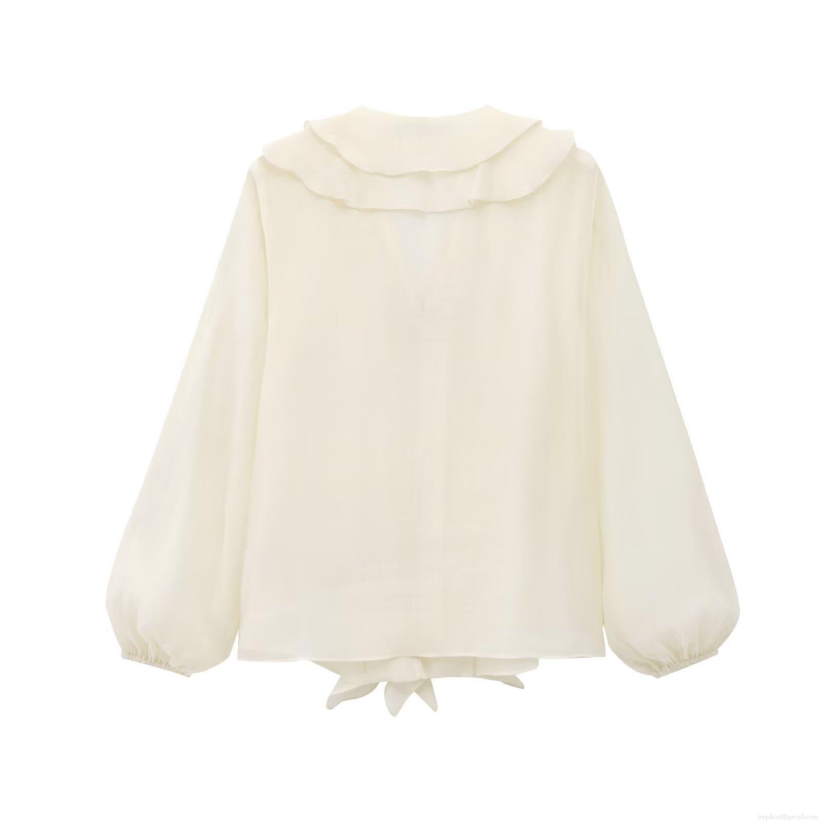 • Women's French Style V-Neck Ruffle Blouse Elegant Layered Long Sleeve Chiffon Tencel Shirt Casual Streetwear Solid Color Top For Women