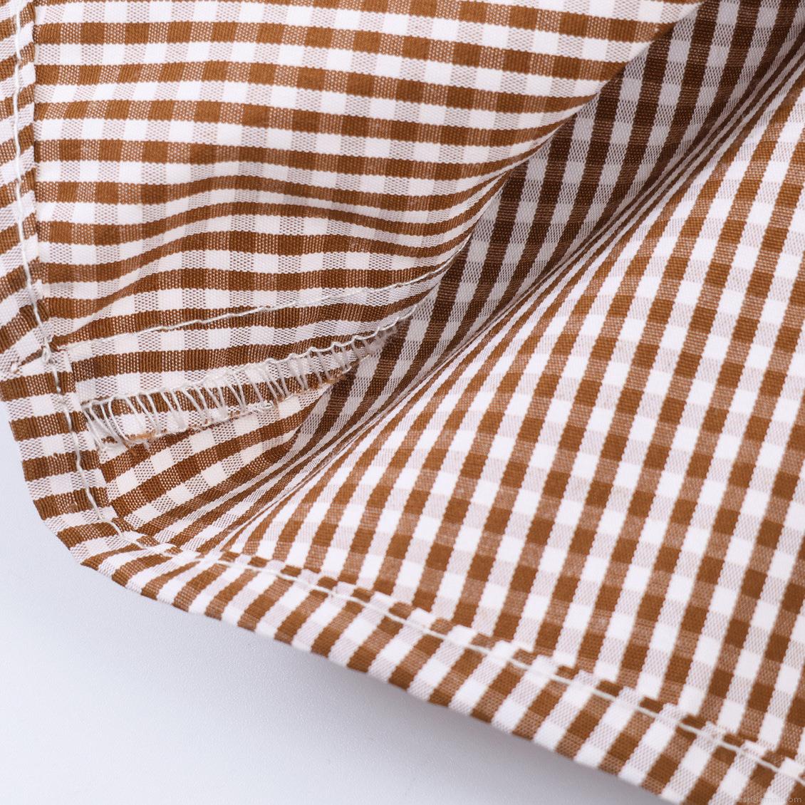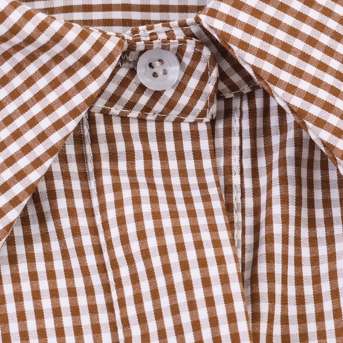 Checkered Pattern, Sun-shaped Buckle, Waist shaping, Puff Sleeves, Vichy Check, Amber Buckle