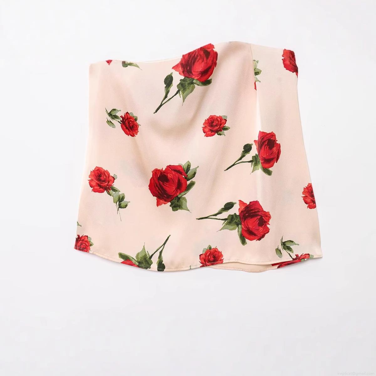 Printing, Satin, Neckband, Backless, Red Roses