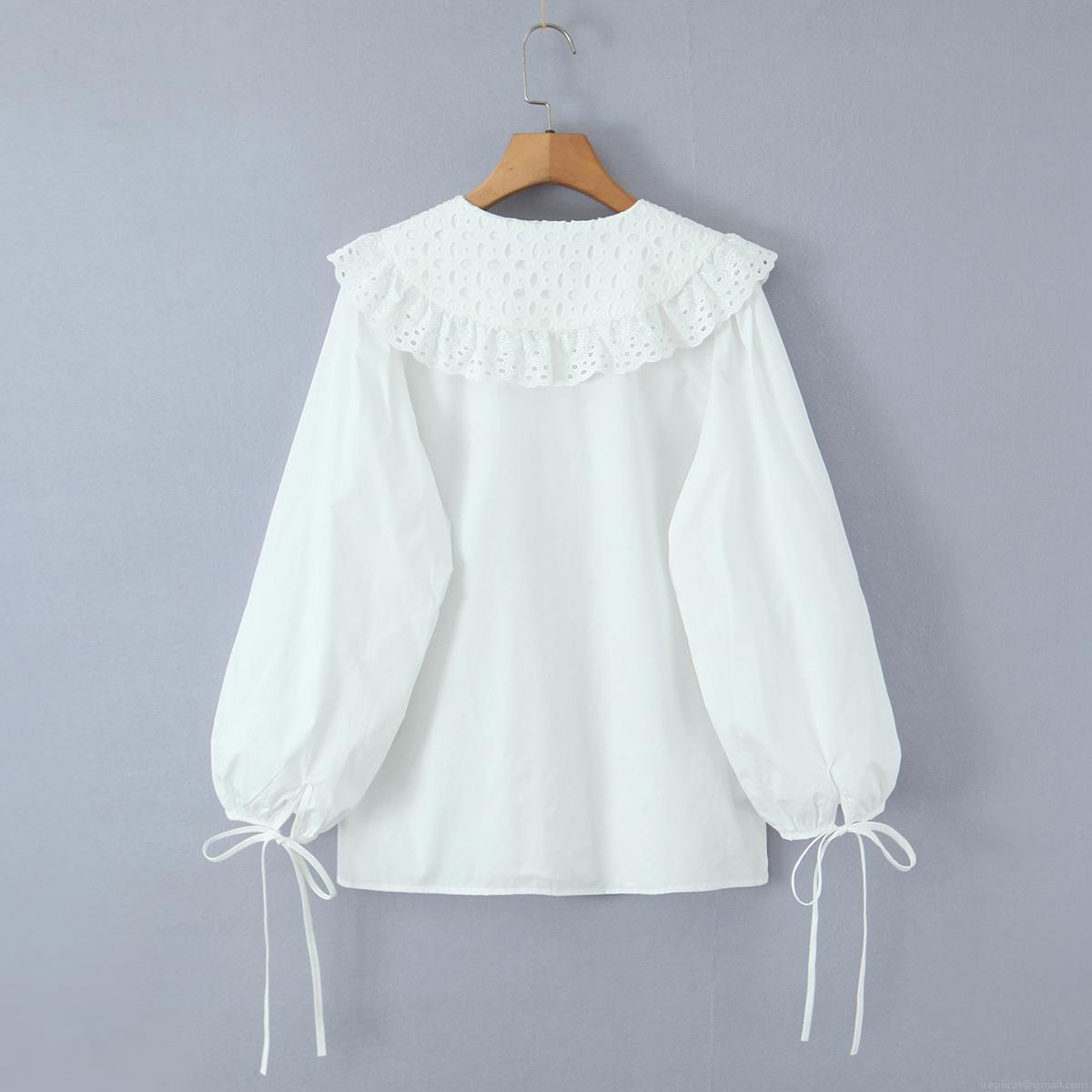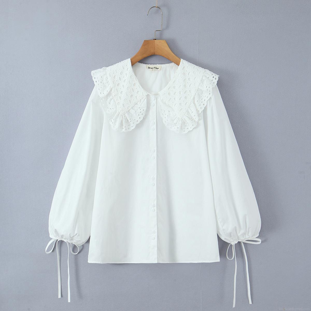 • Women's Lace Peter Pan Collar Blouse Long Lantern Sleeve White Cotton Blend Shirt Casual Loose Elegant Top For Daily Dating Women