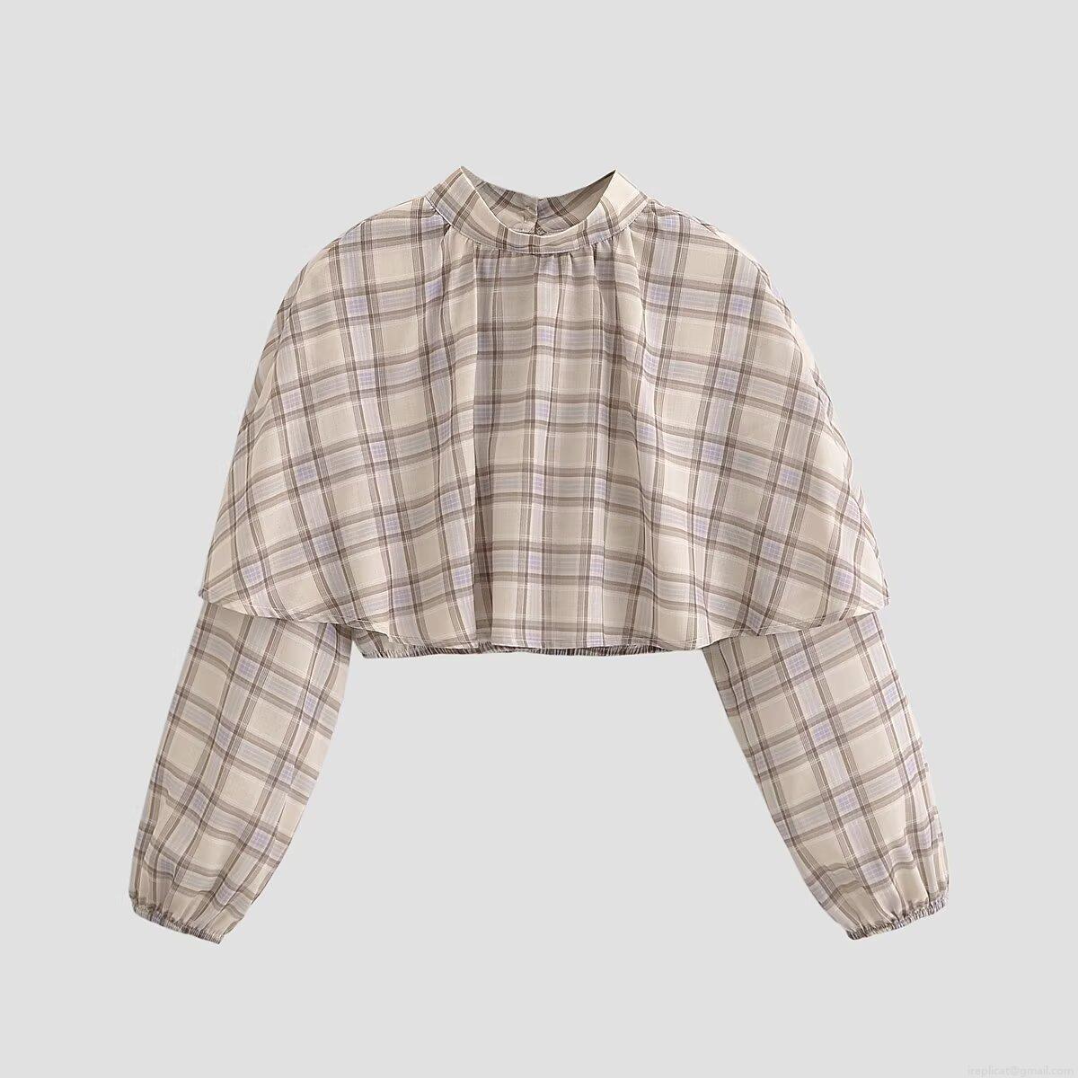 • Women's Layered Cape Plaid Blouse Long Sleeve Mock Neck Pullover 100% Polyester Elegant Casual Plaid Top For Women
