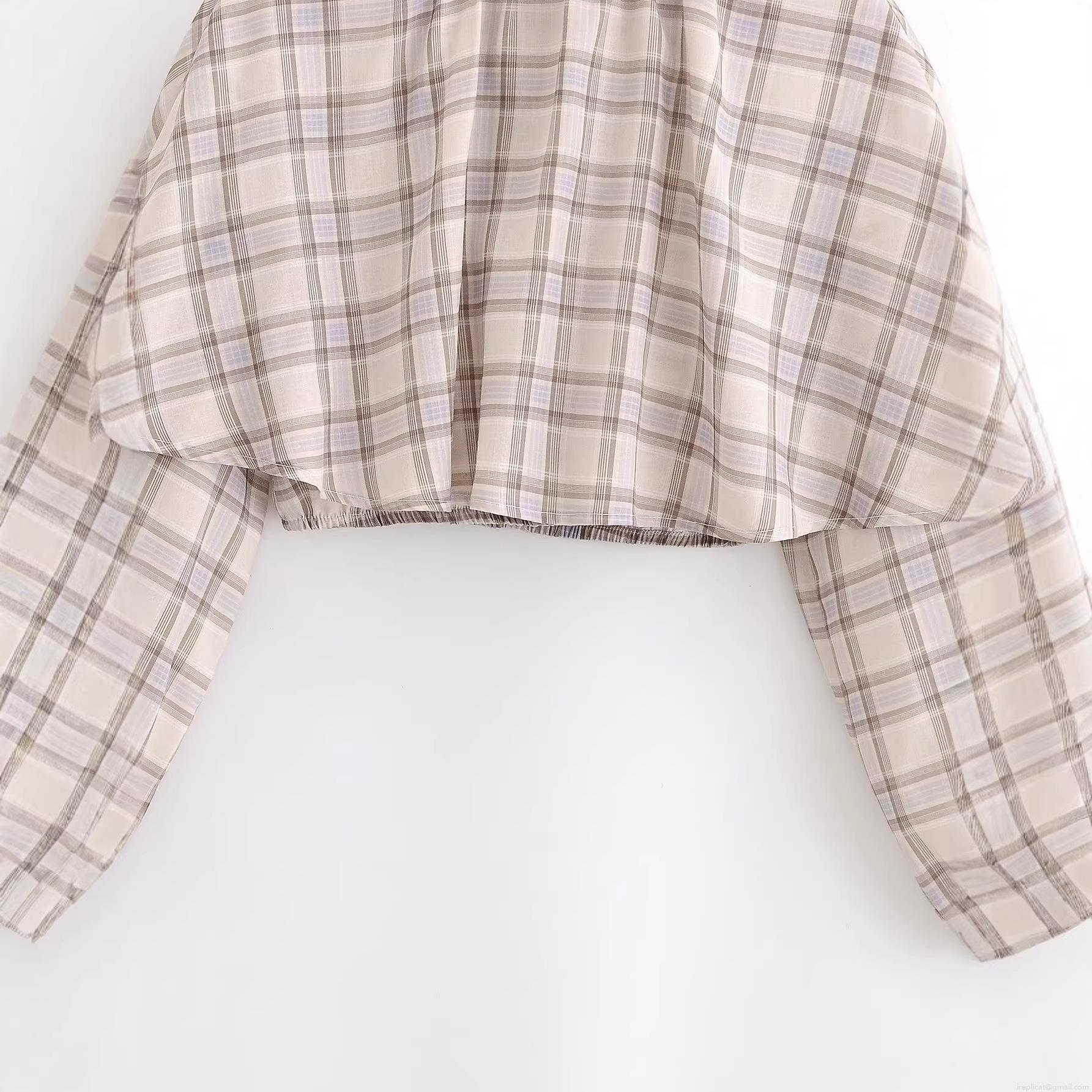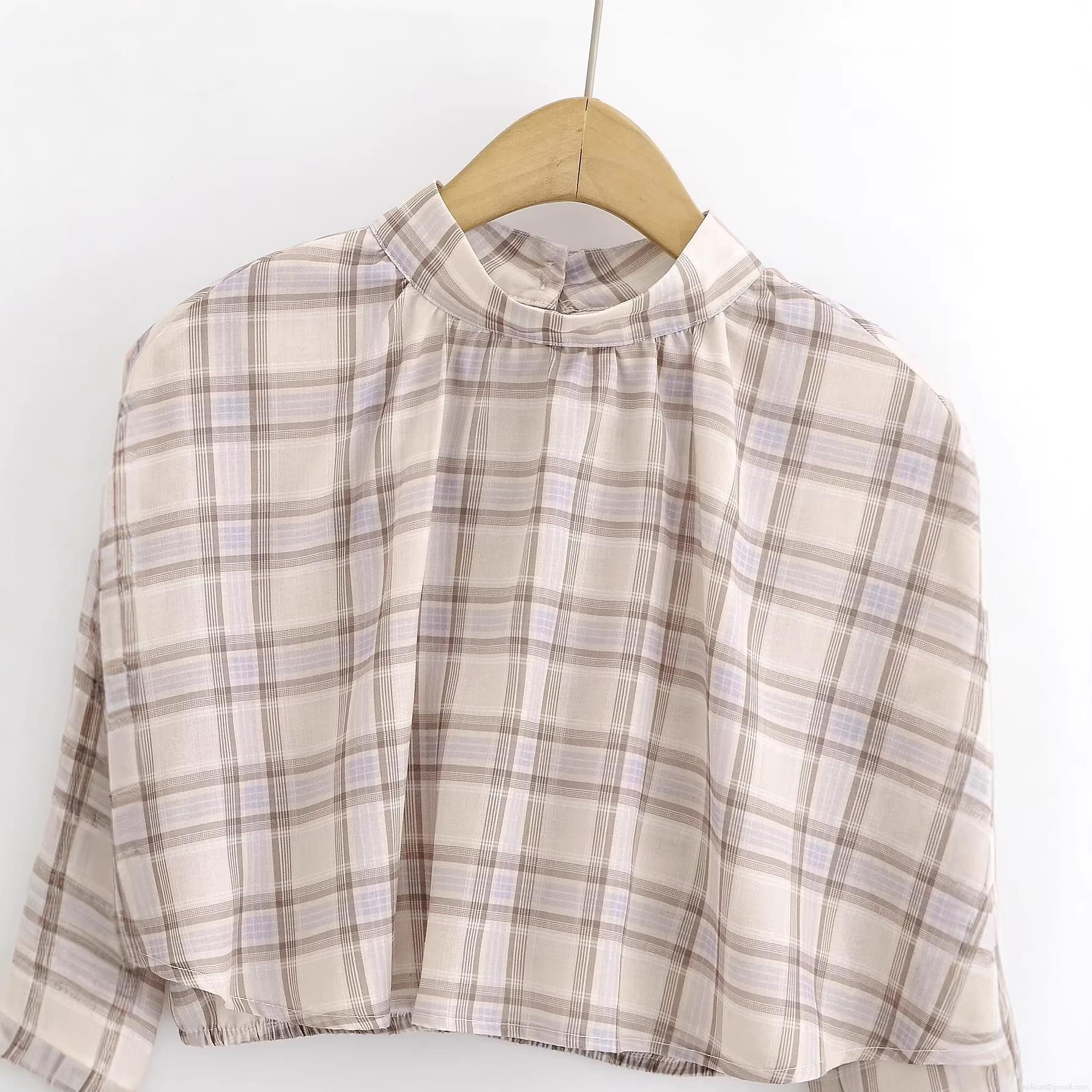 Women's Layered Cape Plaid Blouse Long Sleeve Mock Neck Pullover 100% Polyester Elegant Casual Plaid Top For Women
