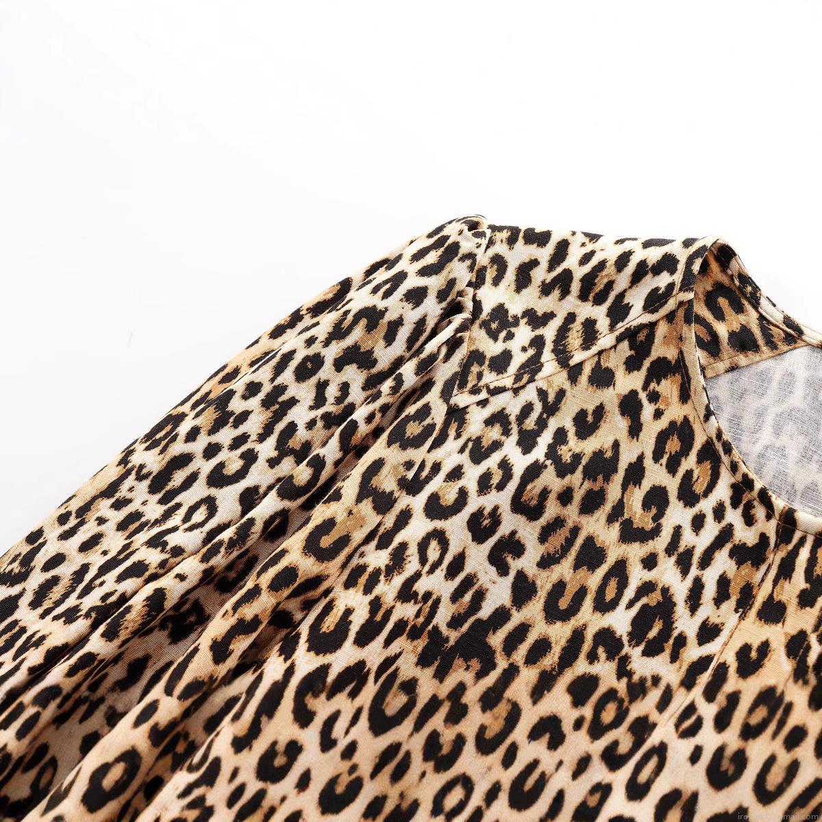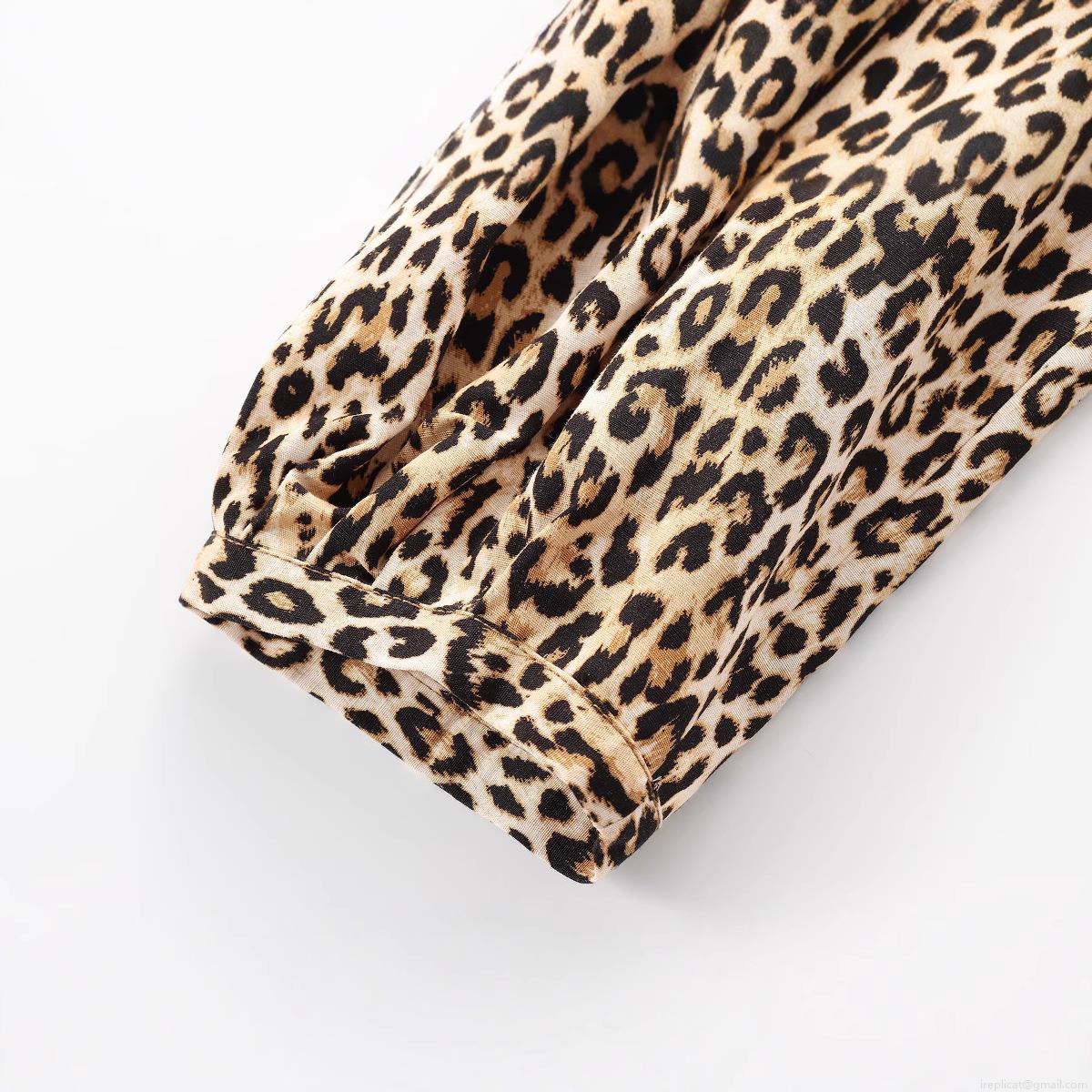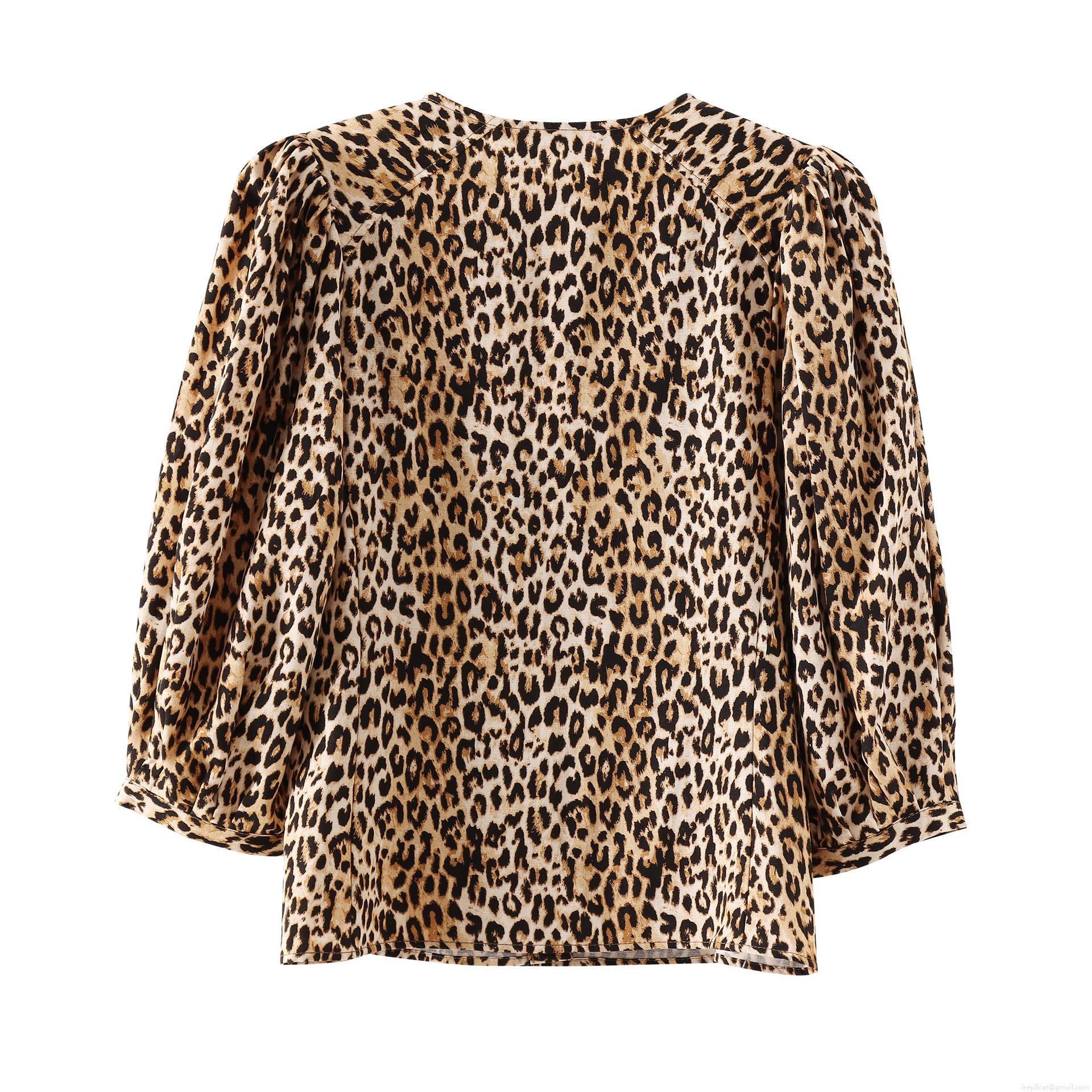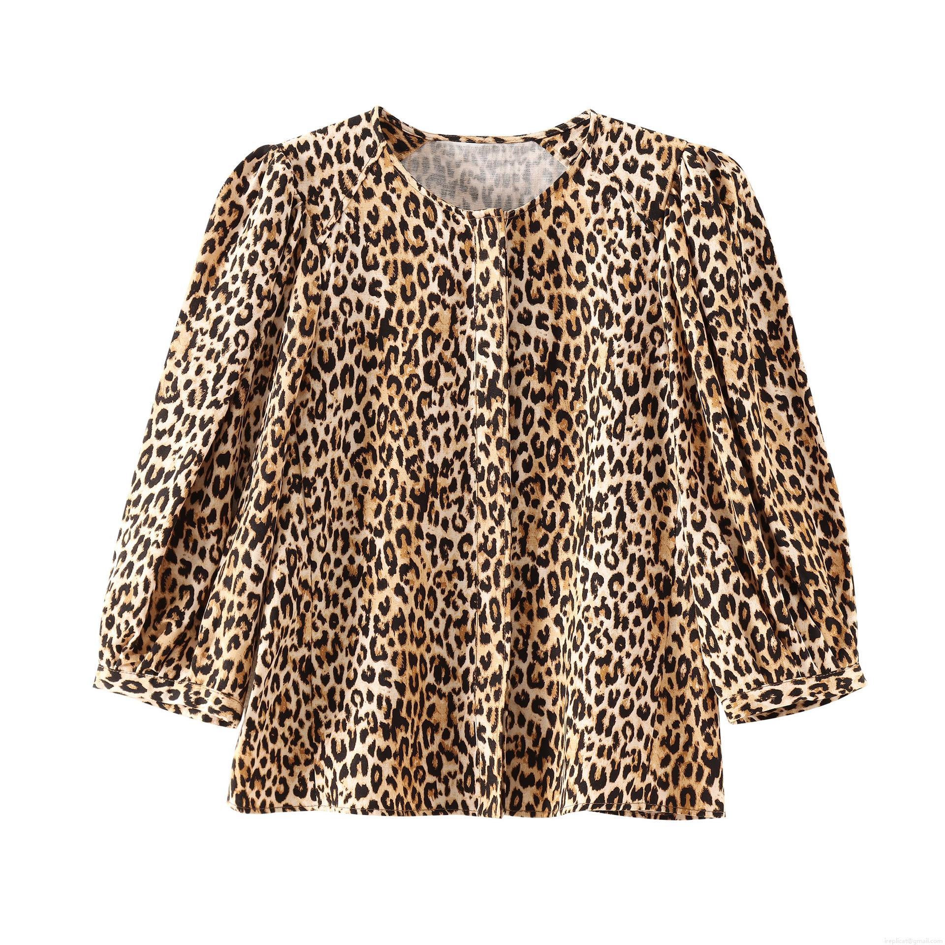 • Women's Leopard Print Long Sleeve Blouse 100% Polyester Round Neck Puff Sleeve Top Casual Street Style European Fashion Button Down Shirt