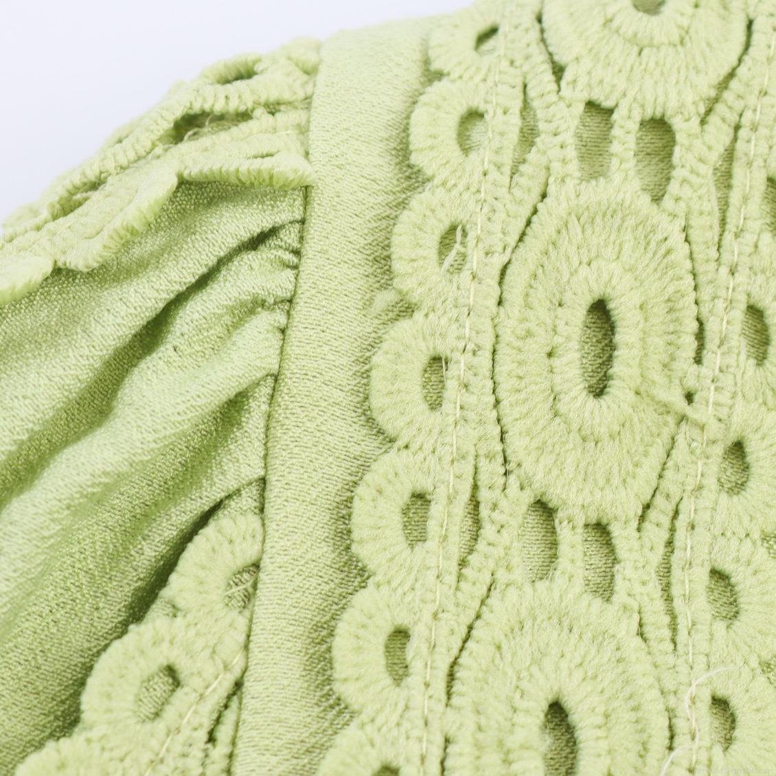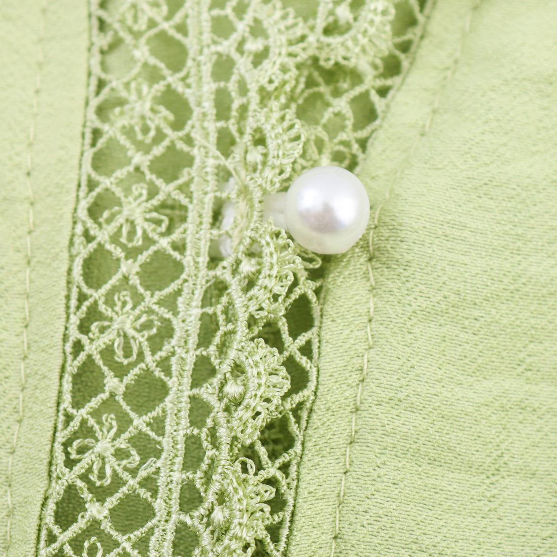 • Women's Light Green Long Sleeve Blouse Retro Hollow Out Lace Patchwork Shirt With Pearl Buttons Lantern Sleeve Sweet Elegant Loose Top For Spring
