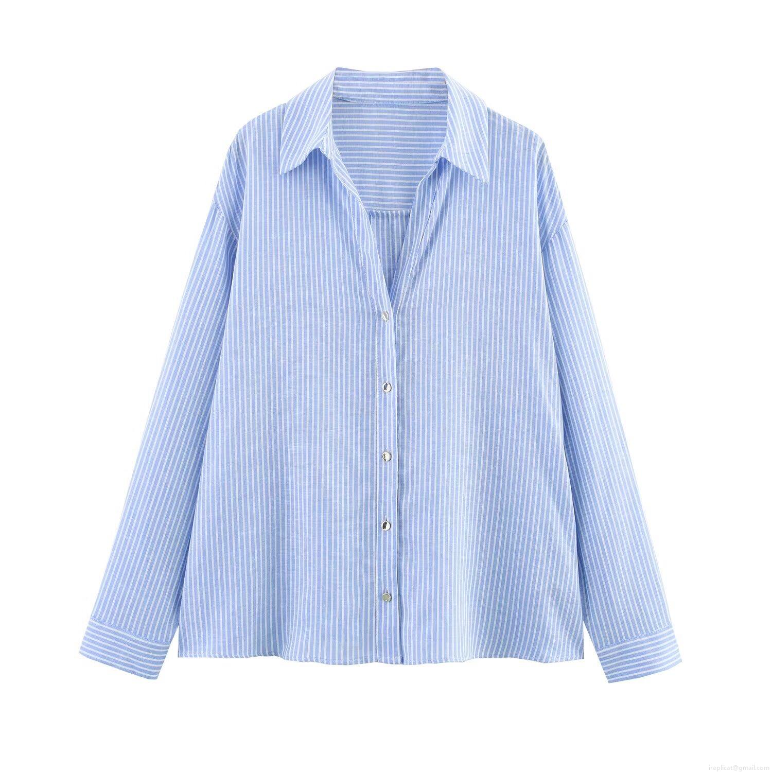• Women's Linen Blend Striped Long Sleeve Shirt Button Down Lapel Collar Casual Blouse For Office Daily Wear Fashion Loose Striped Top