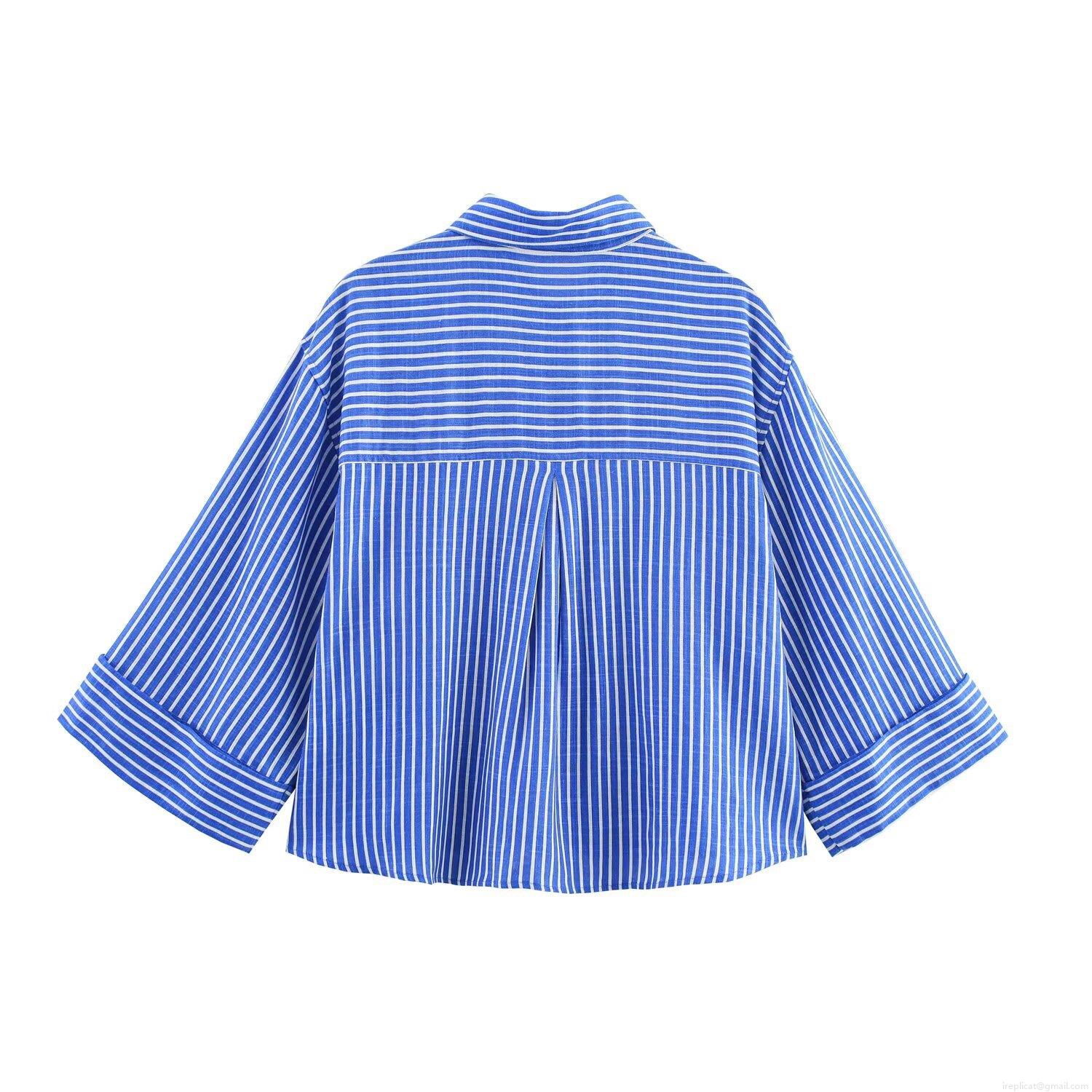 • Women's Linen Blend Vertical Striped Shirt Casual Loose Wide Sleeve Blouse With Dual Pockets Summer Streetwear Top