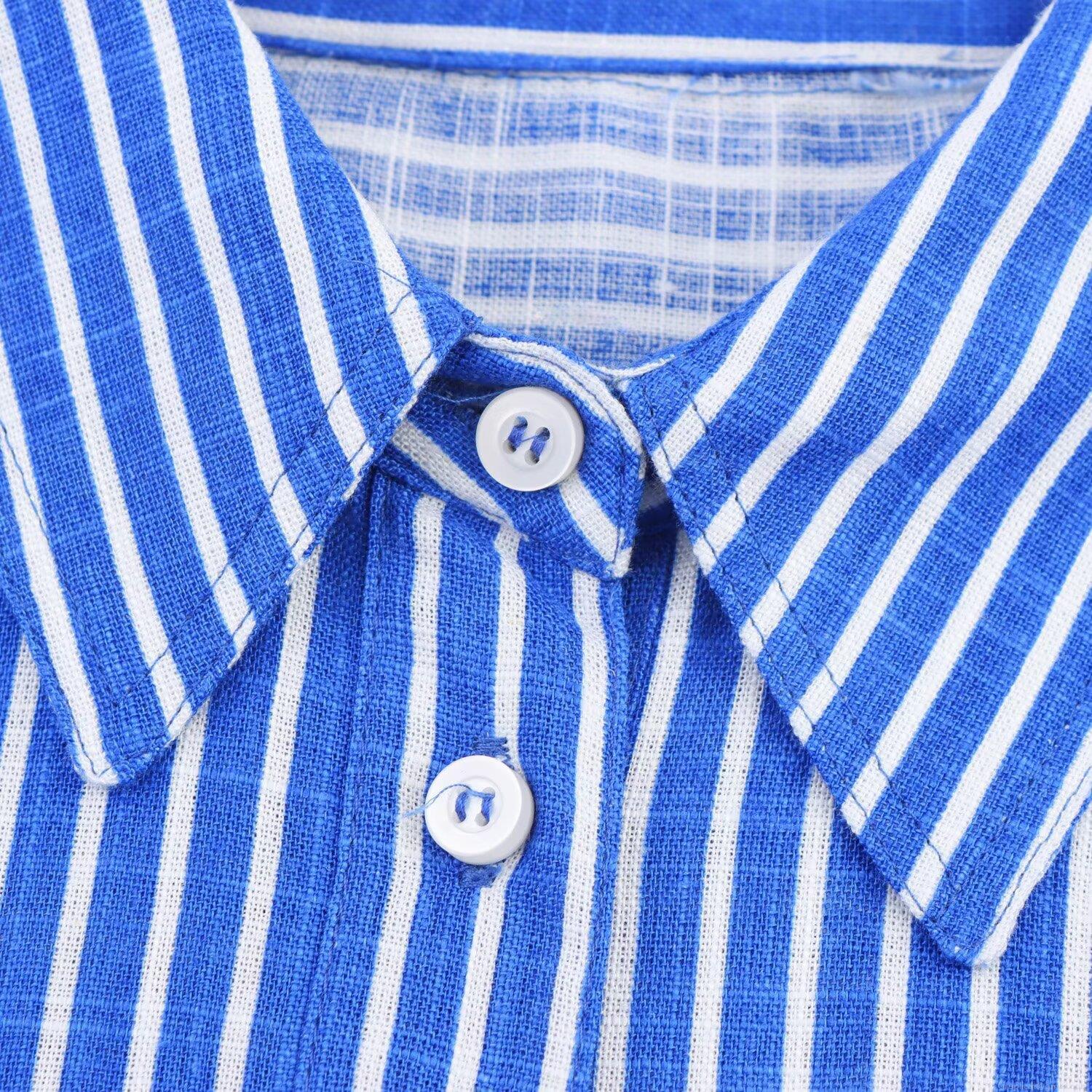 Women's Linen Blend Vertical Striped Shirt Casual Loose Wide Sleeve Blouse With Dual Pockets Summer Streetwear Top