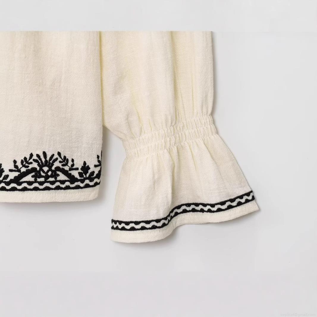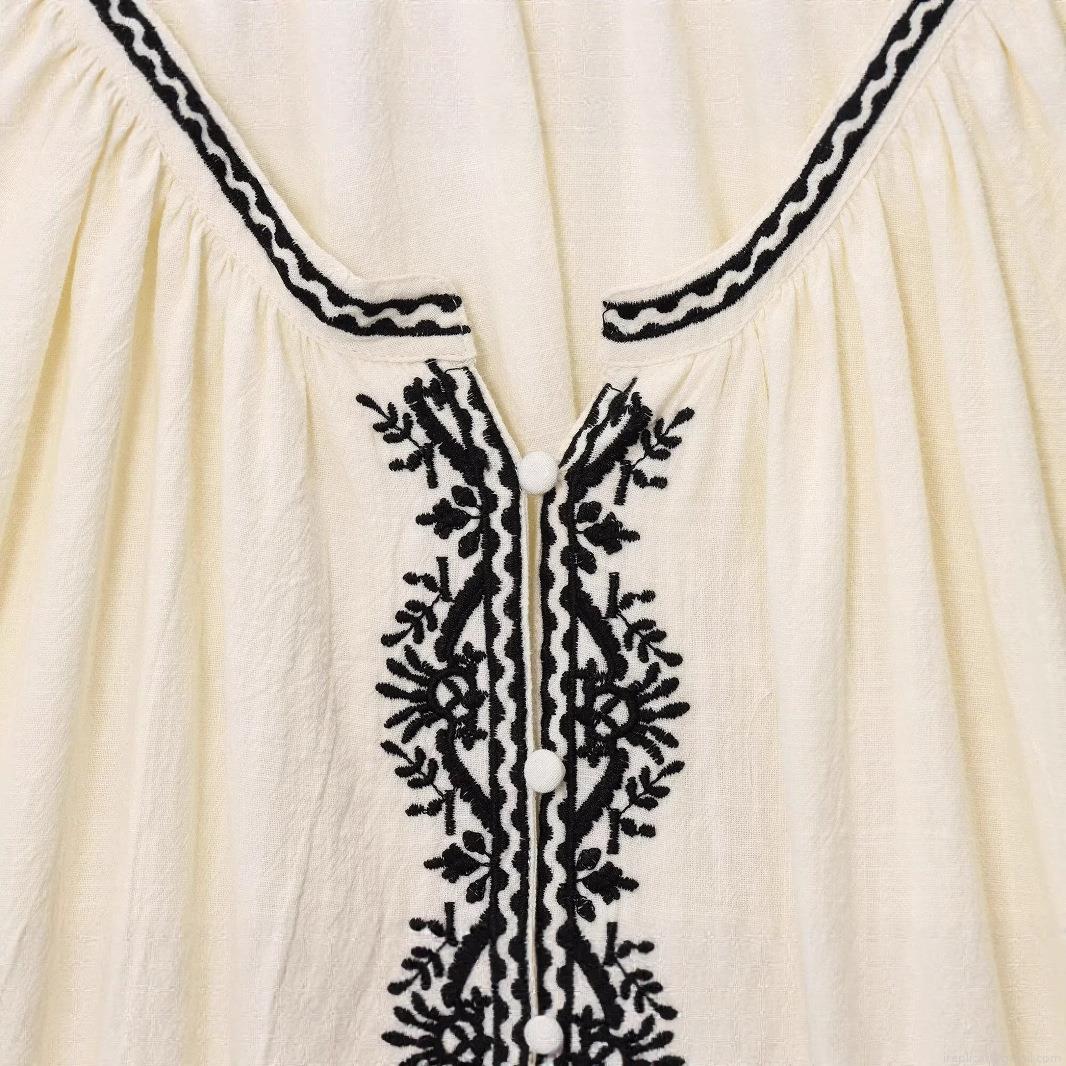 • Women's Long Sleeve Blouse Ethnic Style Embroidery Shirt Boho Beige Polyester Top With Flared Sleeves Round Neck V-Opening Casual Daily Vacation Fashion Clothing