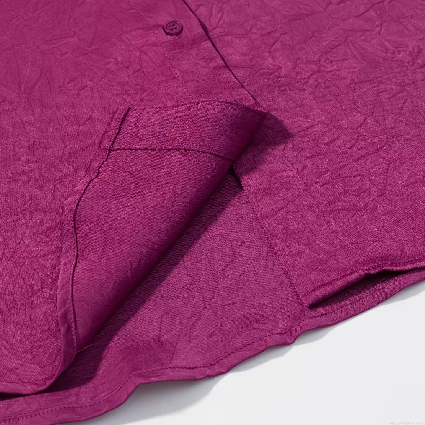 • Women's Long Sleeve Blouse Satin Pleated V-Neck Beaded Top Solid Color Rose Red Street Style Elegant Casual Shirt For Women