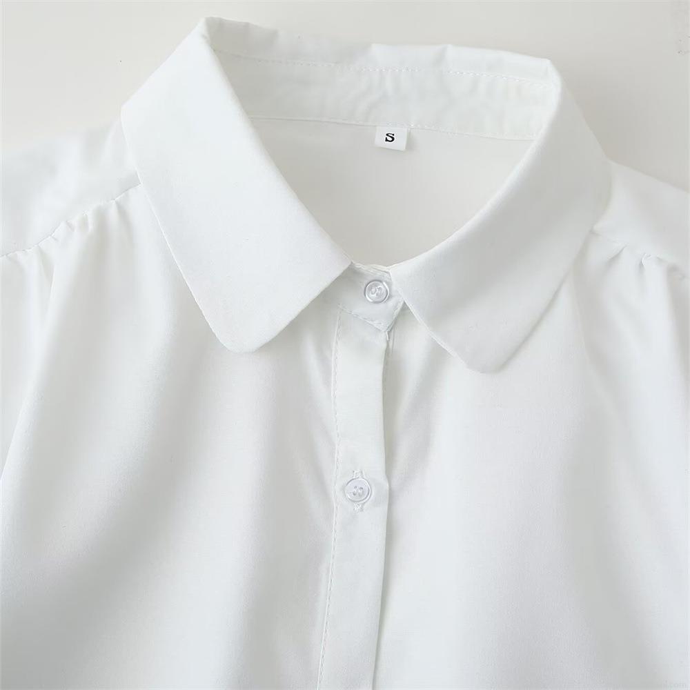 • Women's Long Sleeve Blouse White 100% Polyester Black Floral Embroidery Lapel Collar Button Down Loose Fit Casual Elegant Shirt For Women Streetwear