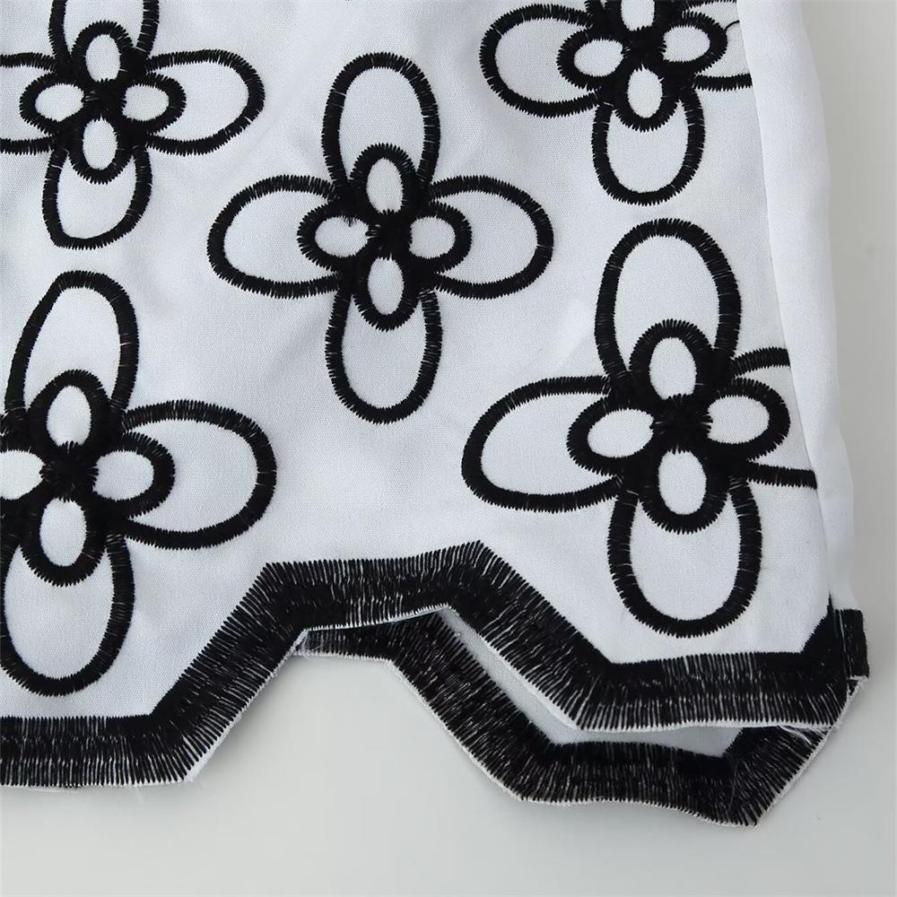 Embroidery, Hollow Out, Lapel, Black Floral Embroidery, Wavy Hem