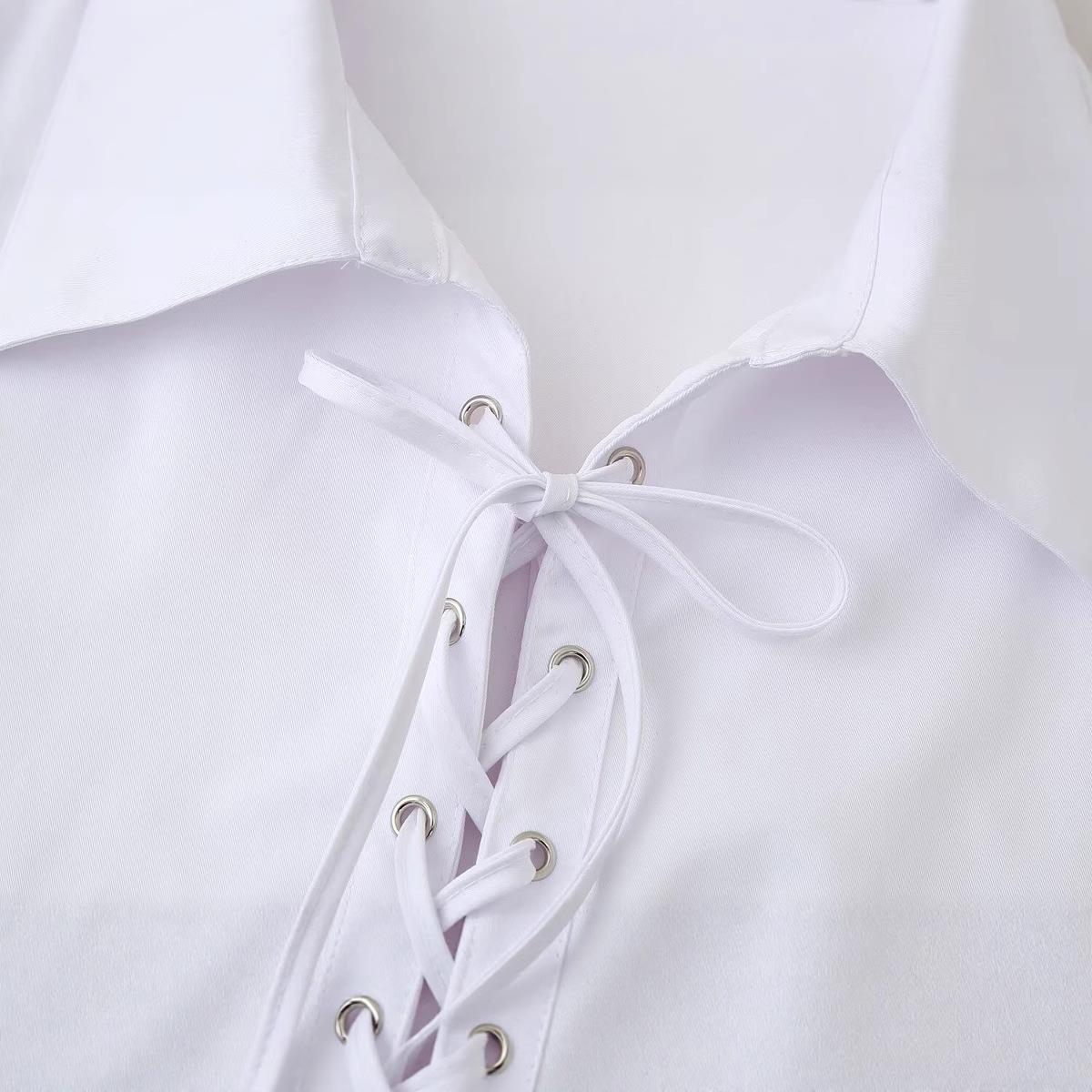 • Women's Long Sleeve Blouse White Polyester Shirt With Lace-up Eyelet V Neck Loose Fit European American Streetwear Style Casual Top For Summer Spring