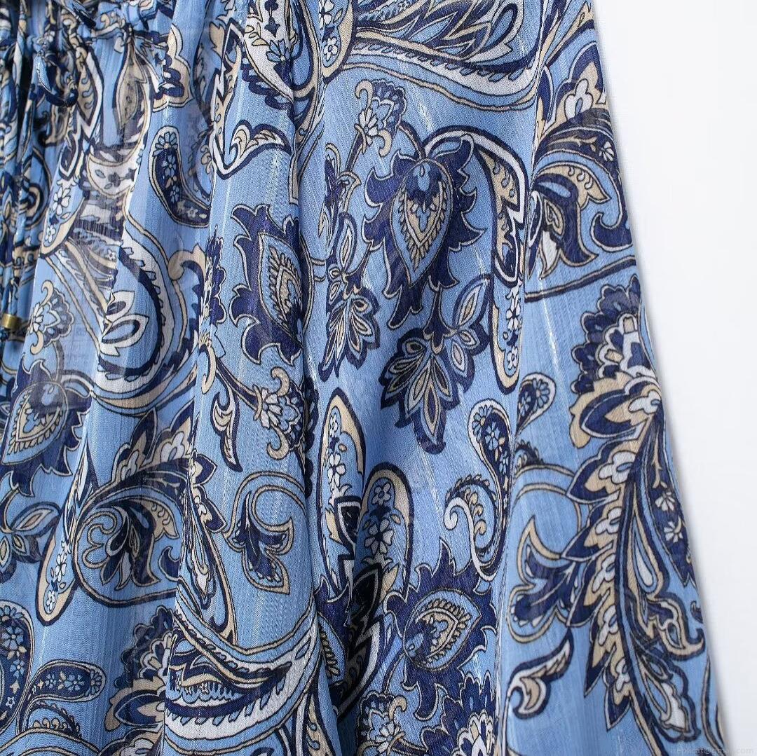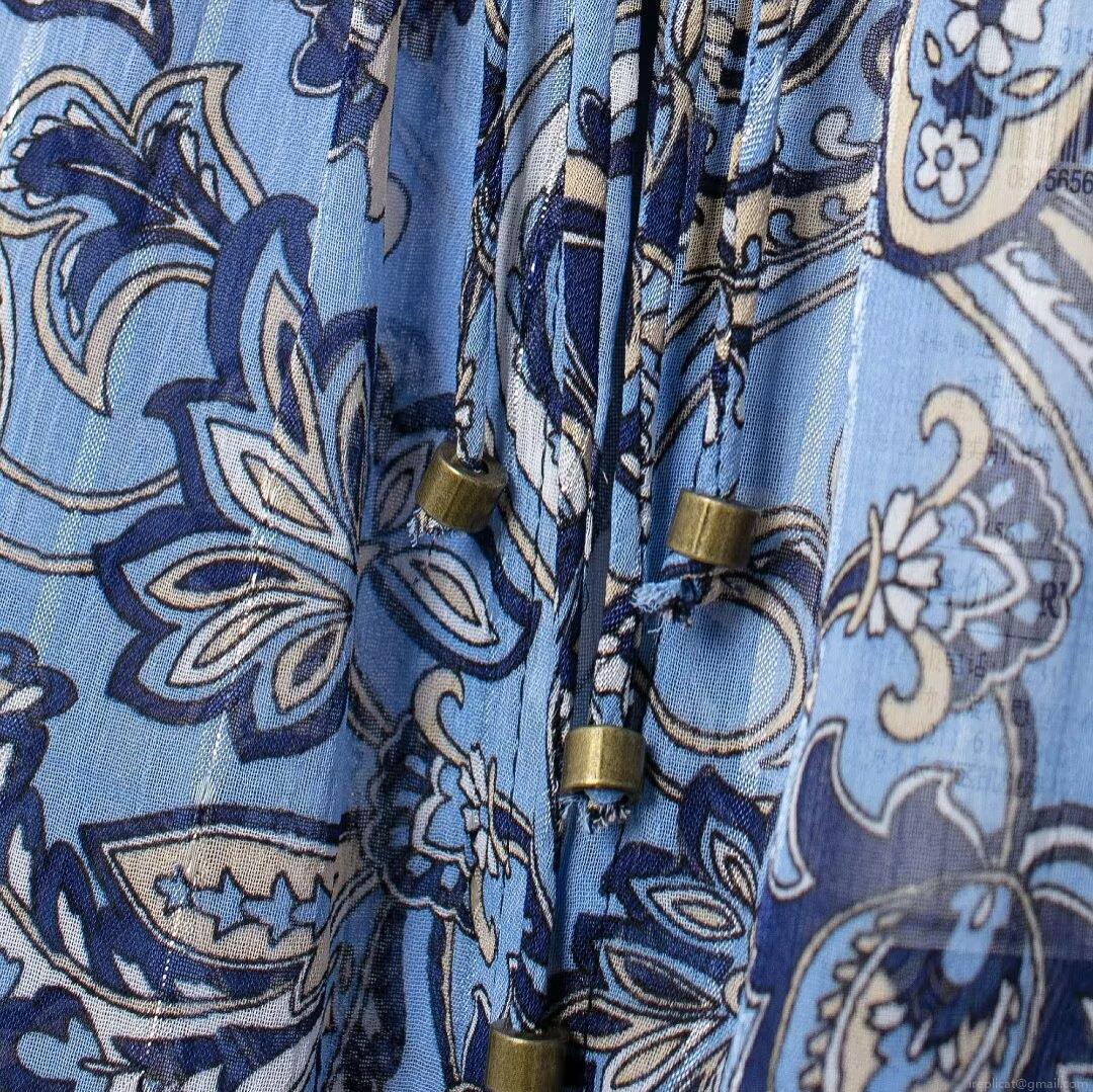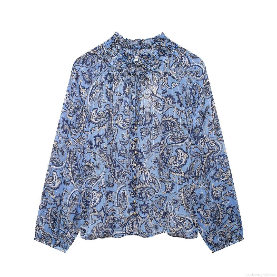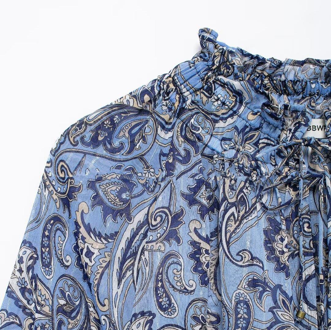 • Women's Long Sleeve Blue Paisley Print Chiffon Blouse Elegant Ruffle Stand Collar Tie-Neck Casual Loose Fit Shirts For Women Daily Wear Retro Style Top