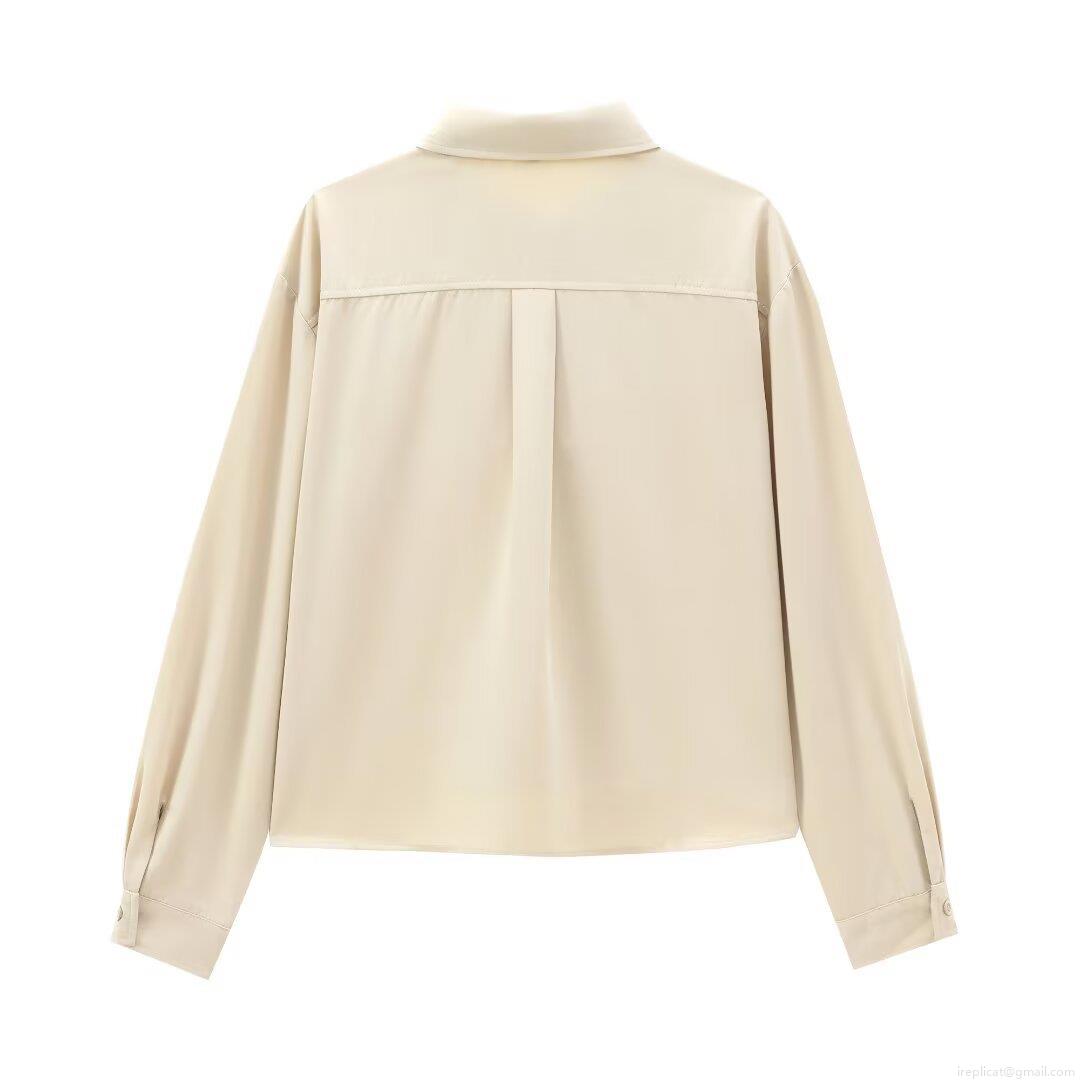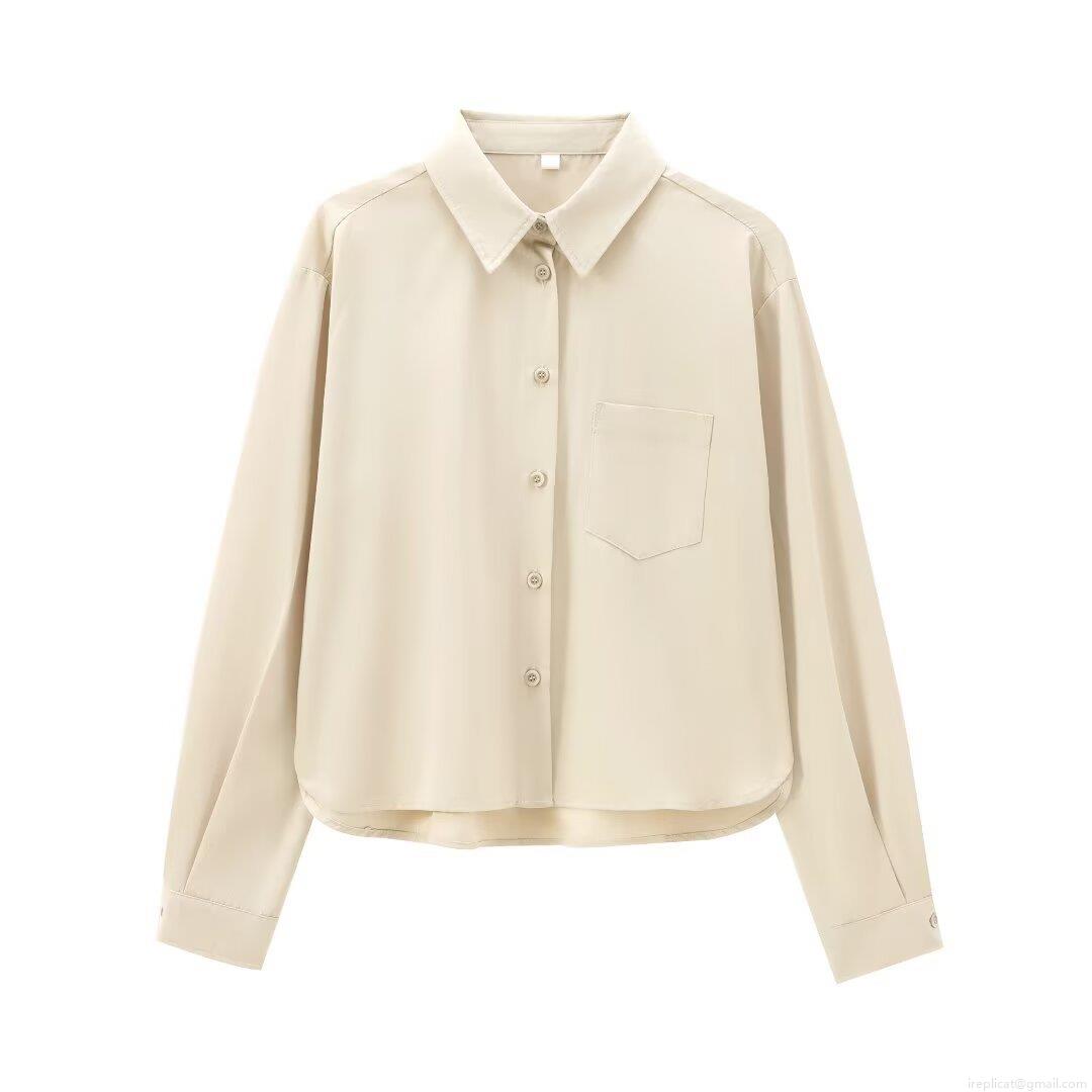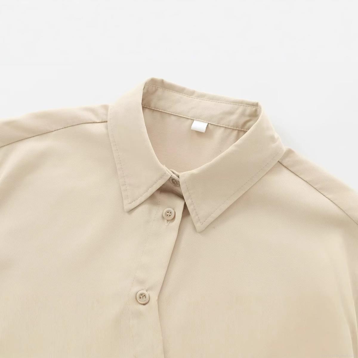 • Women's Long Sleeve Button Down Polyester Twill Shirt Elegant Solid Color Lapel Collar Blouse With Pocket Casual Office Work Tops