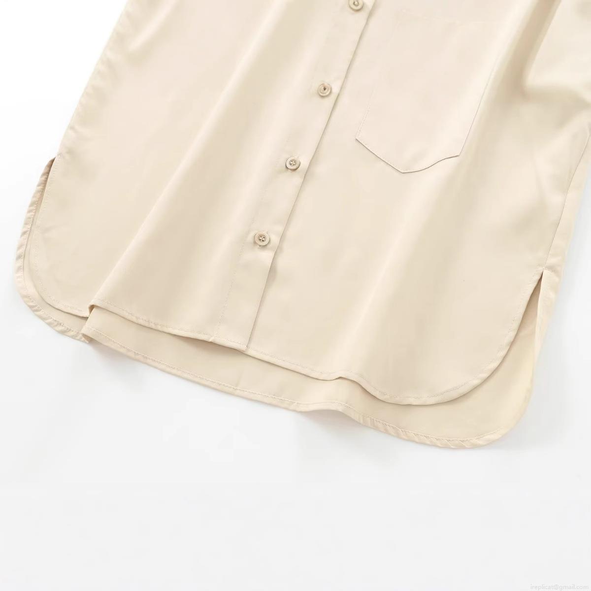 Women's Long Sleeve Button Down Polyester Twill Shirt Elegant Solid Color Lapel Collar Blouse With Pocket Casual Office Work Tops