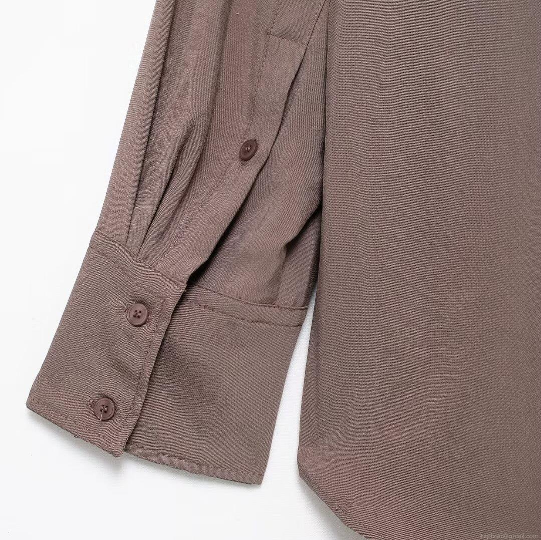 • Women's Long Sleeve Button Up Shirt 100% Polyester Solid Color Lapel Loose Blouse With Double Pockets Urban Commuter Work Office Top For Autumn Winter
